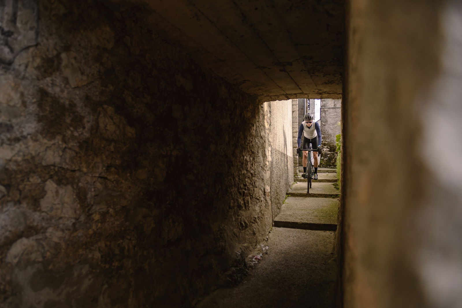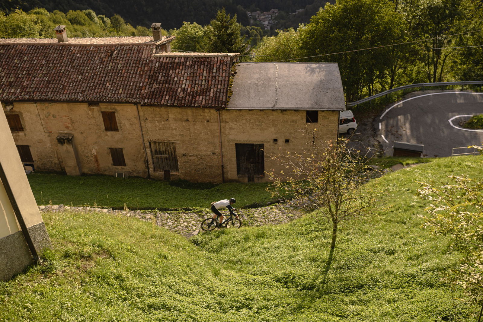 Il percorso rispecchia quello della corsa, da Como a Bergamo, ma con una differenza fondamentale. La maggior parte dell’itinerario che abbiamo creato non è previsto nella versione ufficiale: ci sono strade secondarie, sentieri di campagna, perfino single-track. È un percorso più avventuroso e pieno di deviazioni ma rispecchia il tipo di cultura ciclistica con cui siamo cresciuti.
