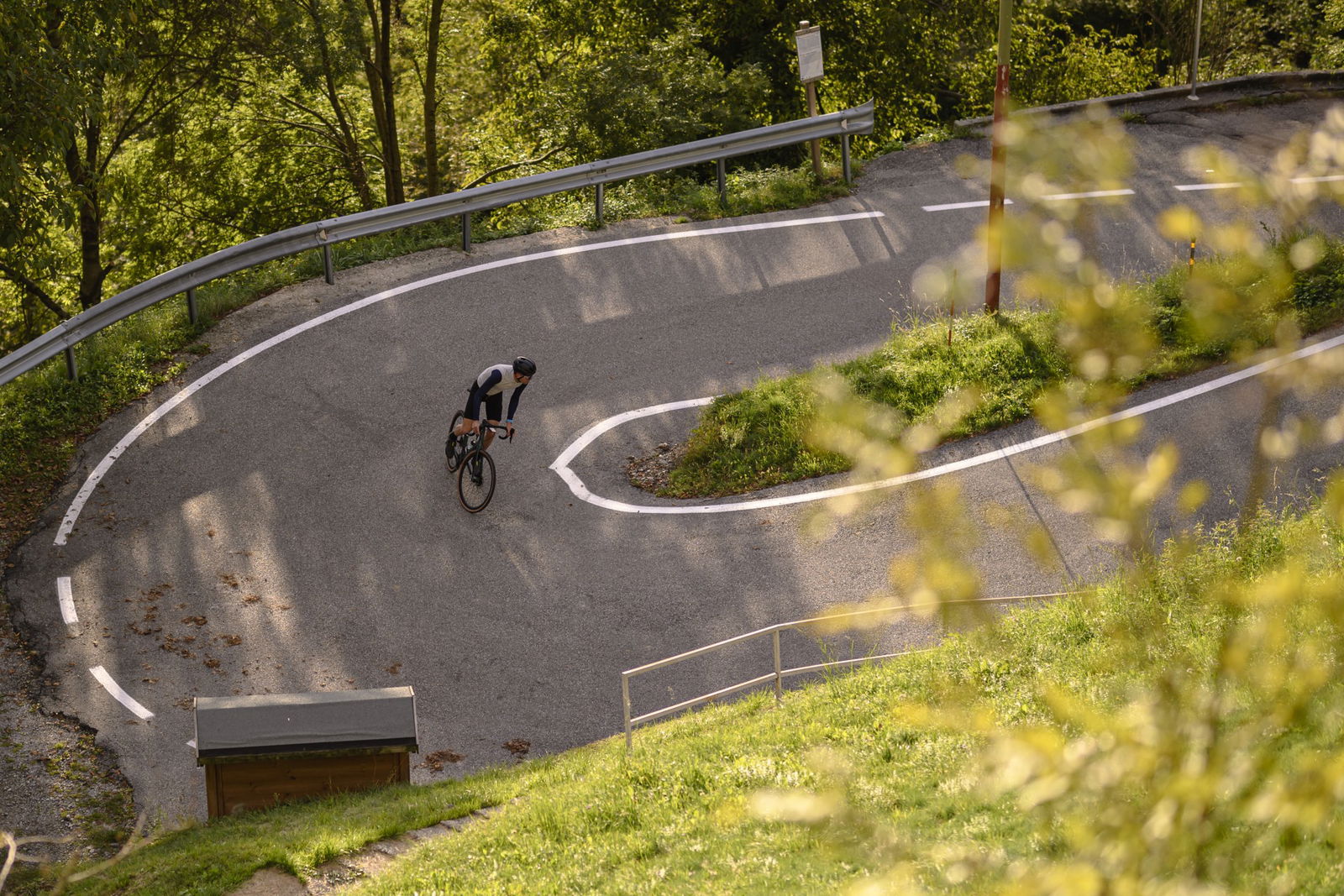 Prima che ce ne accorgiamo siamo fuori dalla strada principale e ci immettiamo sulla salita di Civiglio. La conosciamo dalle passate edizioni del Lombardia, ma dal vivo è più ripida di quanto sembra in televisione. Non è presente nel percorso di quest’anno ma abbiamo deciso di affrontarla come riscaldamento per gli oltre 5.000 metri di dislivello in programma oggi.