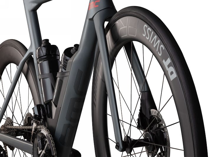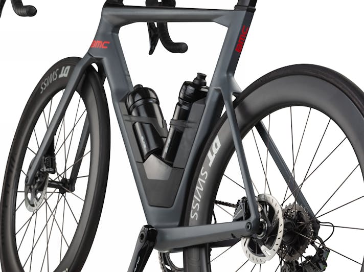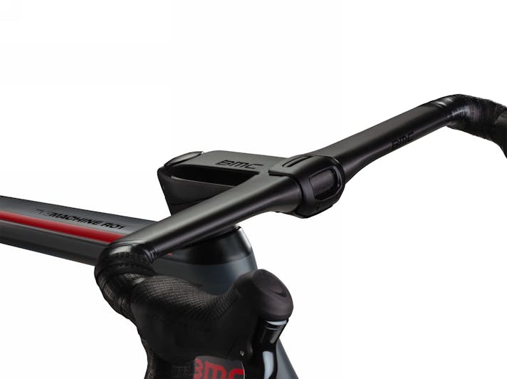 INTEGRAZIONE FUNZIONALELa soluzione non è nuova, ma l’interpretazione sì. L’Aero Module di BMC integra componenti funzionali come le borracce (2 da 550 g) e un vano portaoggetti in una configurazione aerodinamica che minimizza la separazione dei flussi creata, a bassi angoli di incidenza, dalla soluzione portaborraccia/borraccia tradizionali. Il sistema è modulare per consentire di asportare l’Aero Box e tornare UCI legal.Novità anche in ambito cockpit, con l’evoluzione ICS Aero. Il sistema attacco/manubrio ha la funzione di offrire la minor resistenza alla penetrazione possibile, senza perdere però la sua funzionalità e la possibilità di personalizzazione. La sua superficie frontale è minima, come l’impatto del supporto per il ciclocomputer, e il passaggio dei cavi è completamente nascosto. L’efficienza aerodinamica frontale e completata da quella del reggisella, caratterizzato da una sezione con profili Kamm e, come per il manubrio, dalla possibilità di una regolazione molto ampia.I camici bianchi BMC sono estremamente soddisfatti del nuovo progetto: la Timemachine Road 01 è stata messa a confronto diretto con la Teammachine SLR01 in ogni condizione sia in laboratorio sia su strada e il guadagno in termini di efficienza è notevole.