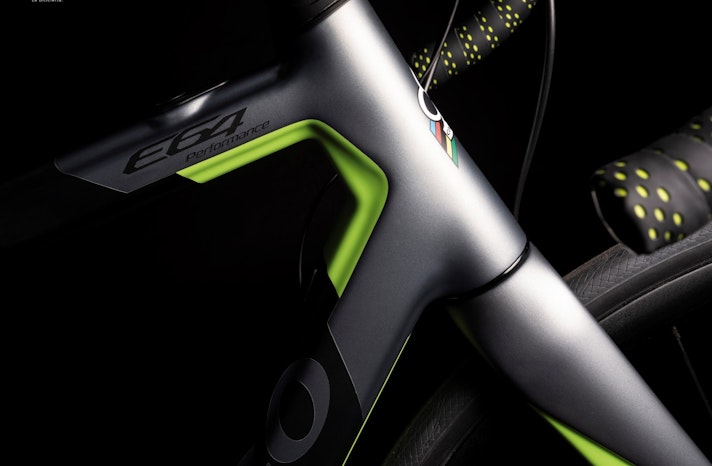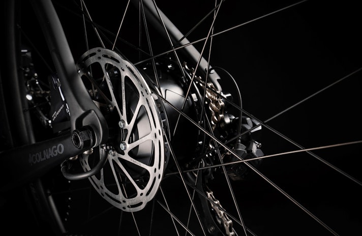 La E64 ha fra le sue doti il peso contenuto: soltanto 11,9 kg, batteria compresa. Un risultato raggiunto soprattutto grazie alla power unit realizzata da Ebikemotion: il peso del motore Hub Drive M1, collocato nel mozzo posteriore e in grado di sviluppare una potenza di 250 W, è di soli 3,7 kg, abbinato a una batteria di tipo integrato nel tubo obliquo. La soluzione scelta da Colnago, perseguita anche da Case come Bianchi e Wheeler, consente anche di mantenere una grande pulizia di linee e un look che poco si discosta da quello delle biciclette tradizionali.