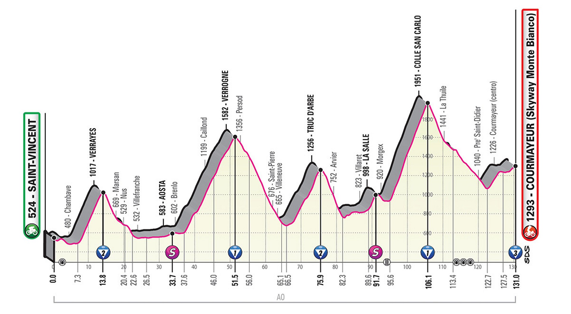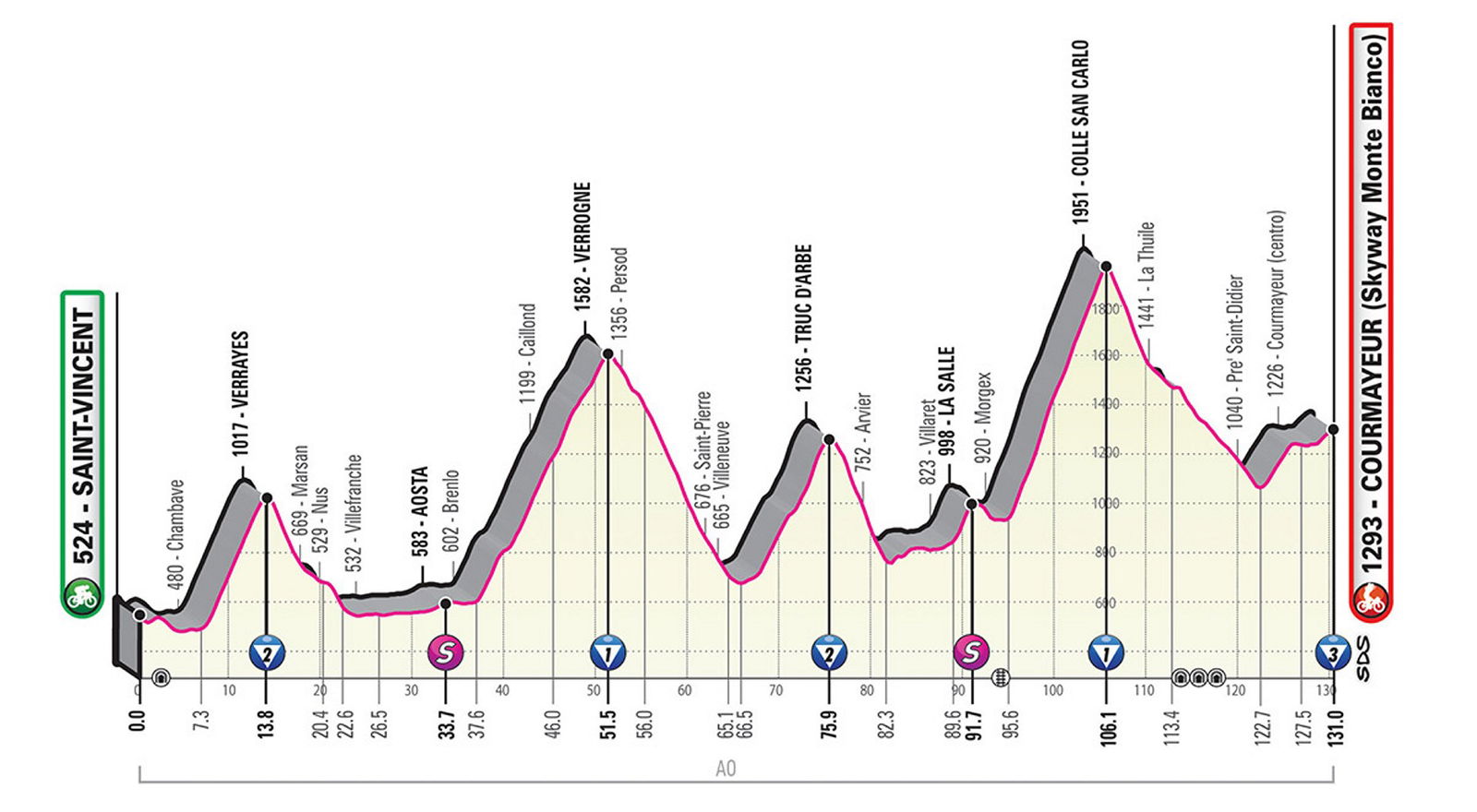 Una tappa che, così tracciata, Damiano non l’ha mai percorsa, anche se conosce bene l’ultima salita, quella che porta al Colle San Carlo. La conosce, ma la scorderebbe volentieri… Fu teatro di una di quelle pagine che hanno scritto l’epica del Ciclismo: era il Giro del 2006; 13esima tappa, da Alessandria a La Thuile, che si raggiungeva dopo una picchiata di quattro chilometri una volta scollinati sul San Carlo. Era una di quelle tappe che piacciono tanto a chi guarda e per niente a chi pedala: pioggia, freddo, vento, 25° alla partenza e 5° all’arrivo, crisi di freddo, mal di stomaco, ritiri… Quel giorno l’impresa la fece Piepoli, con Basso che limitò i danni ma mise definitivamente le mani sul Giro, mentre Cunego (allora punta della Lampre) finì staccato di 2’36” in compagnia di Savoldelli.