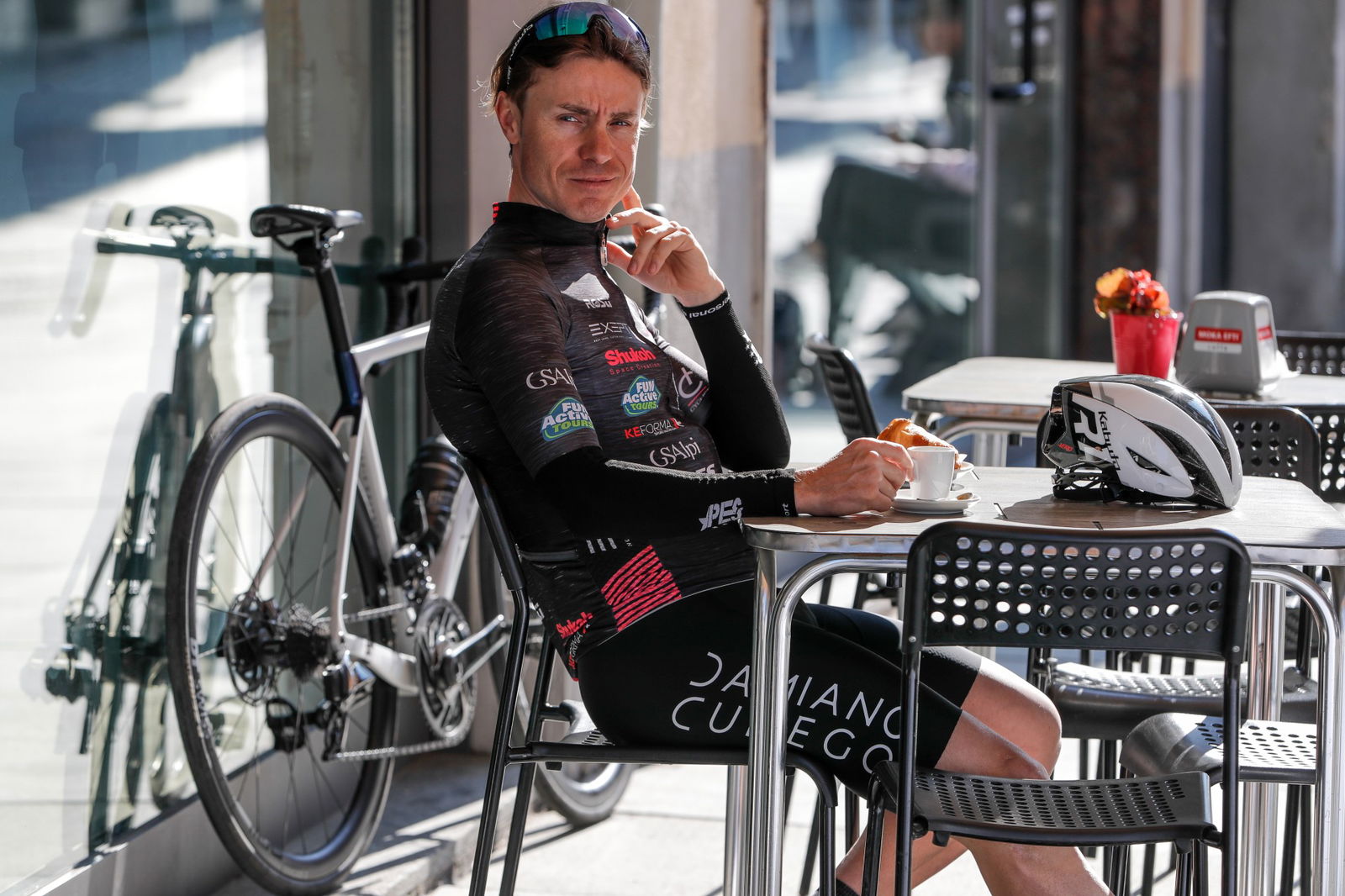 Ci beviamo i dieci chilometri che ci separano dalla valle come il Genepy con il ghiaccio della sera prima e raggiungiamo Courmayeur con luce a sufficienza per girare le ultime scene e scattare le foto che mancano. Damiano trema dal freddo come nemmeno quel giorno di maggio del 2006, ma continua a ubbidire ai comandi della troupe senza mai smettere di sorridere “ancora un giro della rotonda, Damiano“, “alza la bici sopra la testa. Così… ancora“, “dai, tira i qudricipiti e fai la faccia da cattivo, che è l’ultima“. Poi, il Purosangue si cambia, saluta tutti con grande calore, pubblica un’altra “storia” sul suo profilo Instagram, ci invita alla presentazione del suo libro e si infila in auto per tornare a Verona.