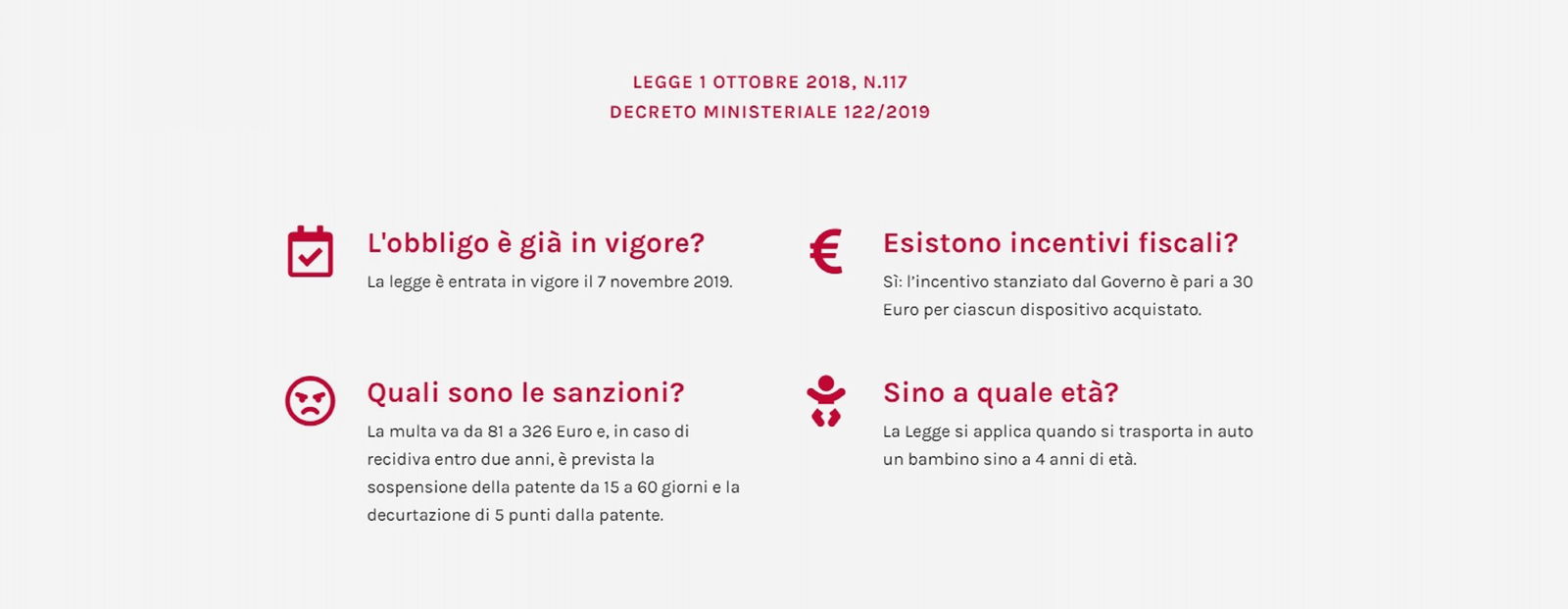 Non è qualunquismo. Sebbene l’Italia sia il primo Paese al mondo ad avere adottato una legge che mira a prevenire l’abbandono, la sua fumosità è l’ennesima conferma del pressapochismo con cui si affrontano problemi anche seri…Dal 7 novembre i dispositivi anti abbandono sono diventati obbligatori per chi viaggia in auto con a bordo bambini fino a 4 anni, ma l’applicazione effettiva delle multe è slittata a marzo 2020 e c’è ancora poca chiarezza sui provvedimenti legislativi in materia. Senza contare che alcuni dei prodotti sul mercato non sono a norma.