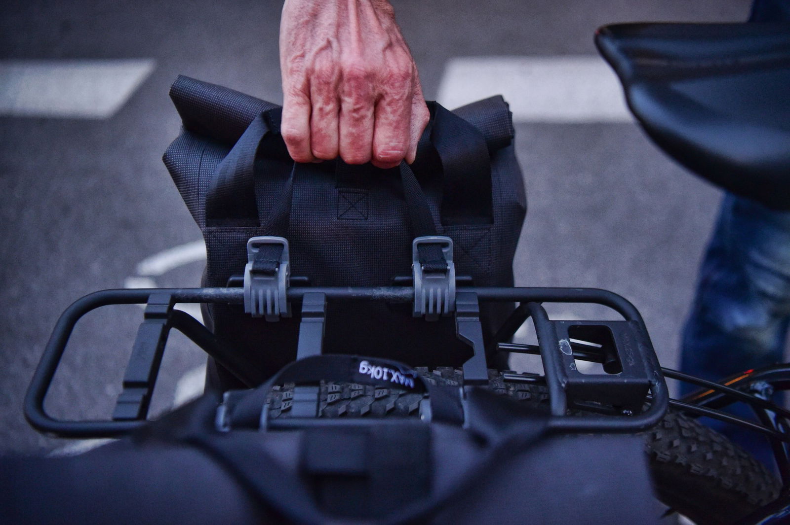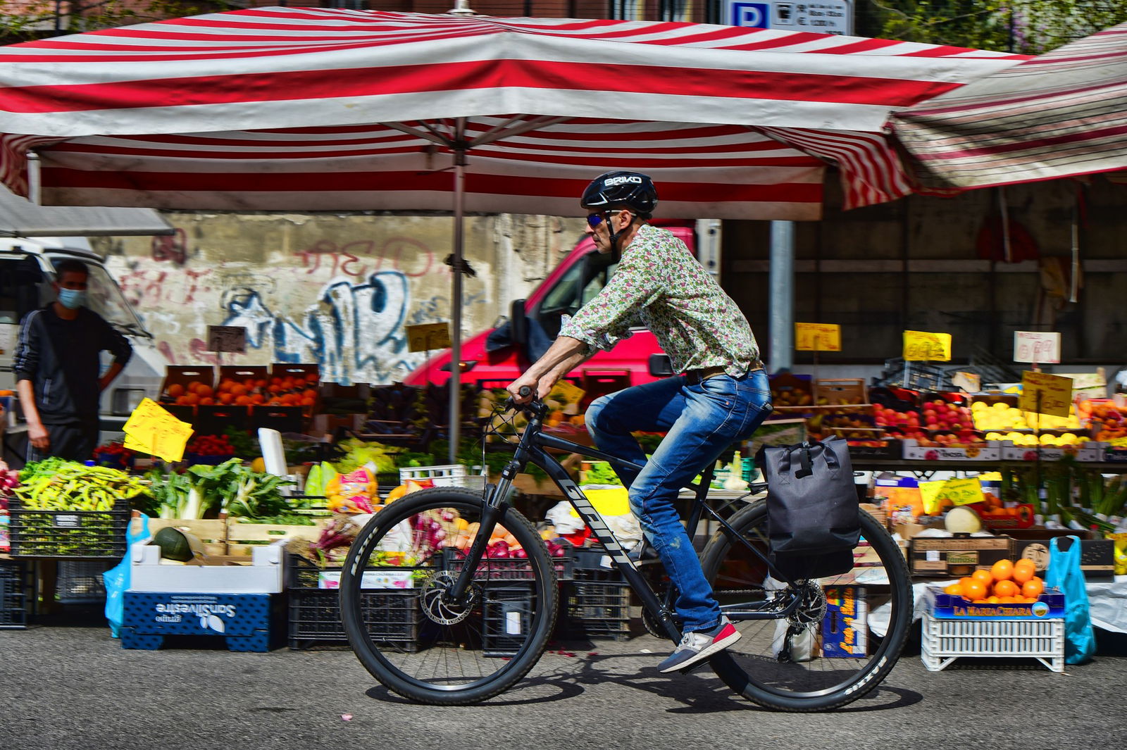 Le borse sono molto pratiche. Non mi piace molto il materiale con cui sono costruite, un po’ rigido, però sono curate, abbastanza capienti (fino a 10 kg di portata) e con un intelligente sistema di aggancio/sgancio rapido. Io ci ho messo una discreta scorta di frutta e verdura, pane e mezzo chilo di frittini che ho mangiato in pausa pranzo… Non è certo una cargo bike ma, volendo, sul portapacchi si può fissare un cestello extra per aumentare la capacità di carico.
