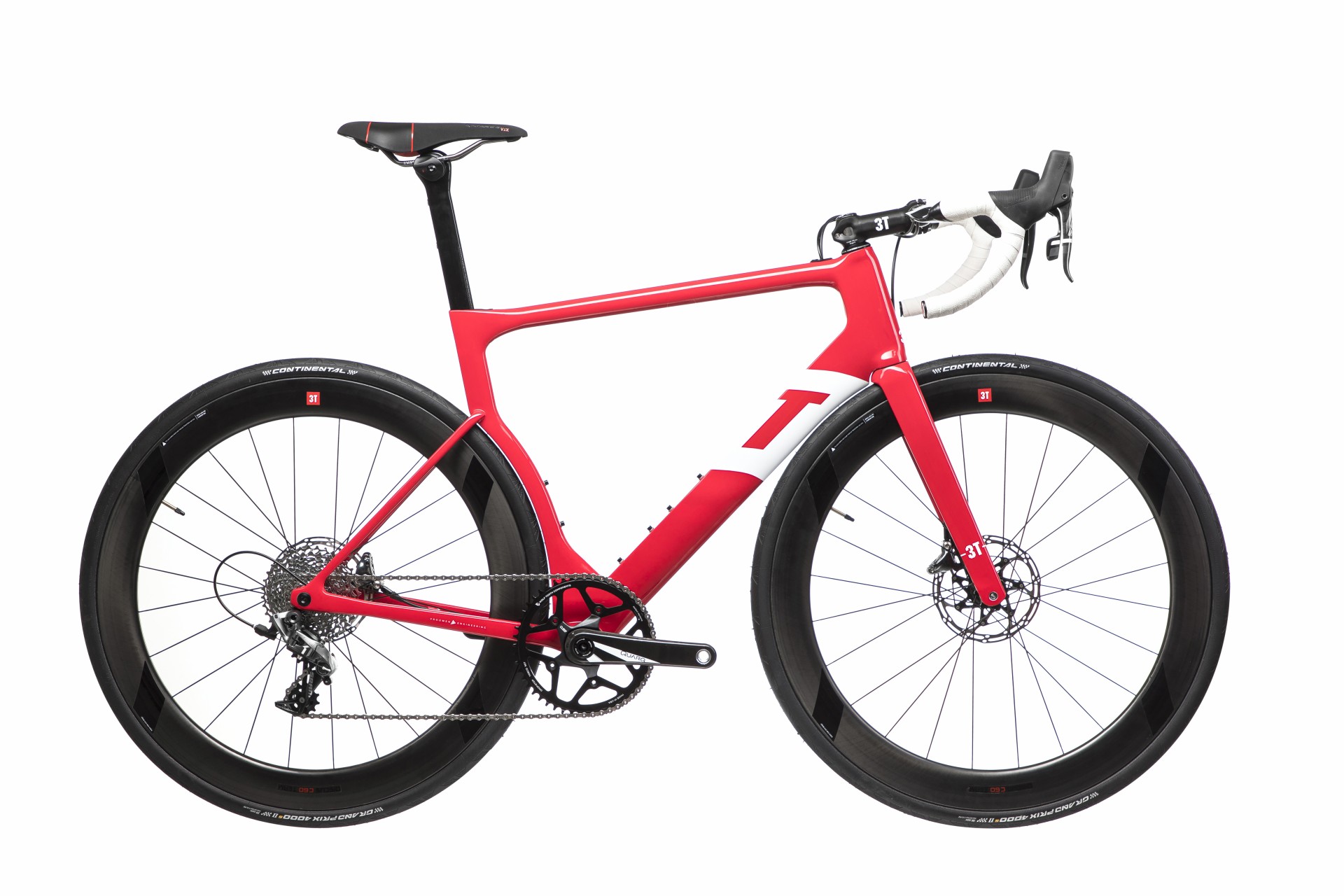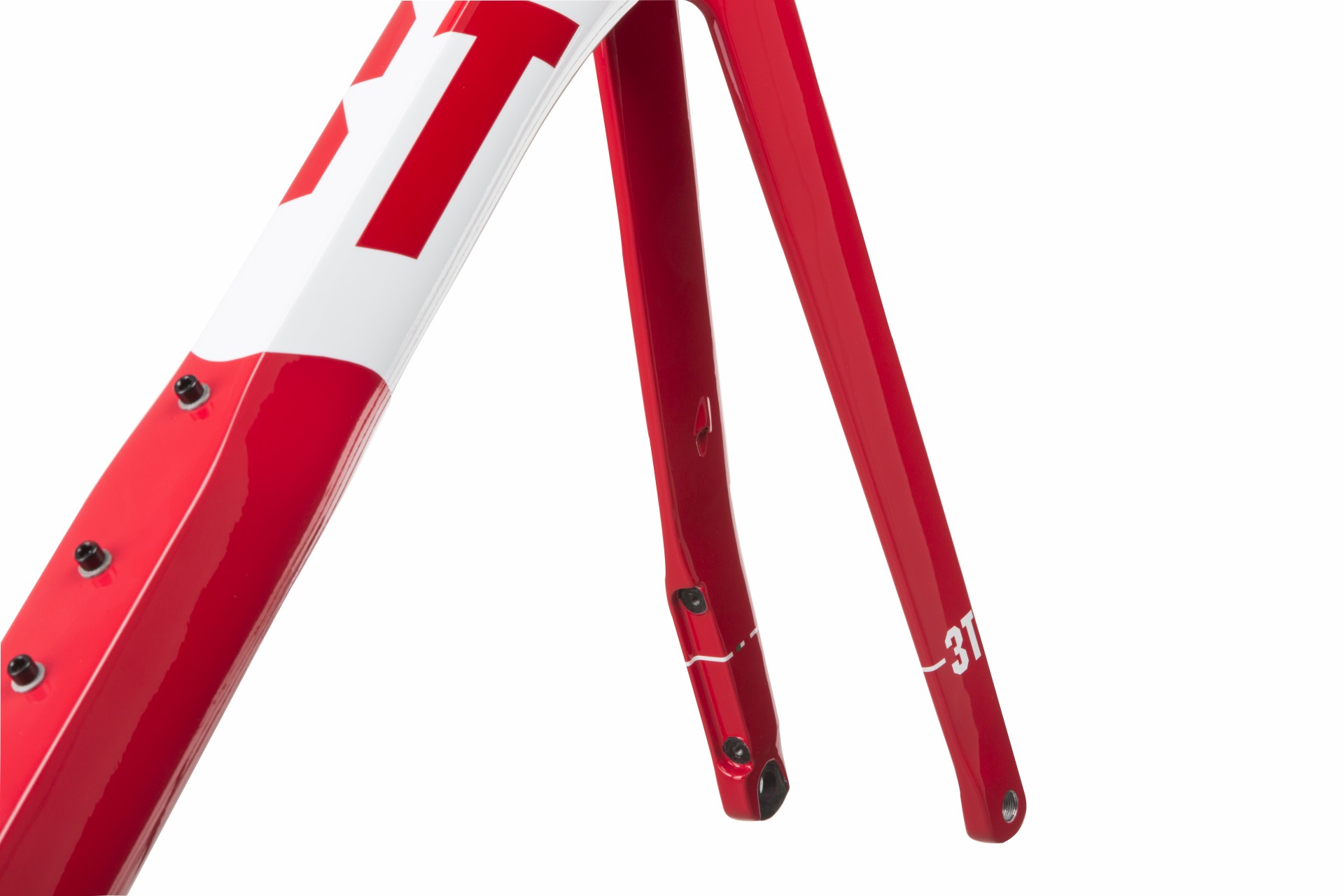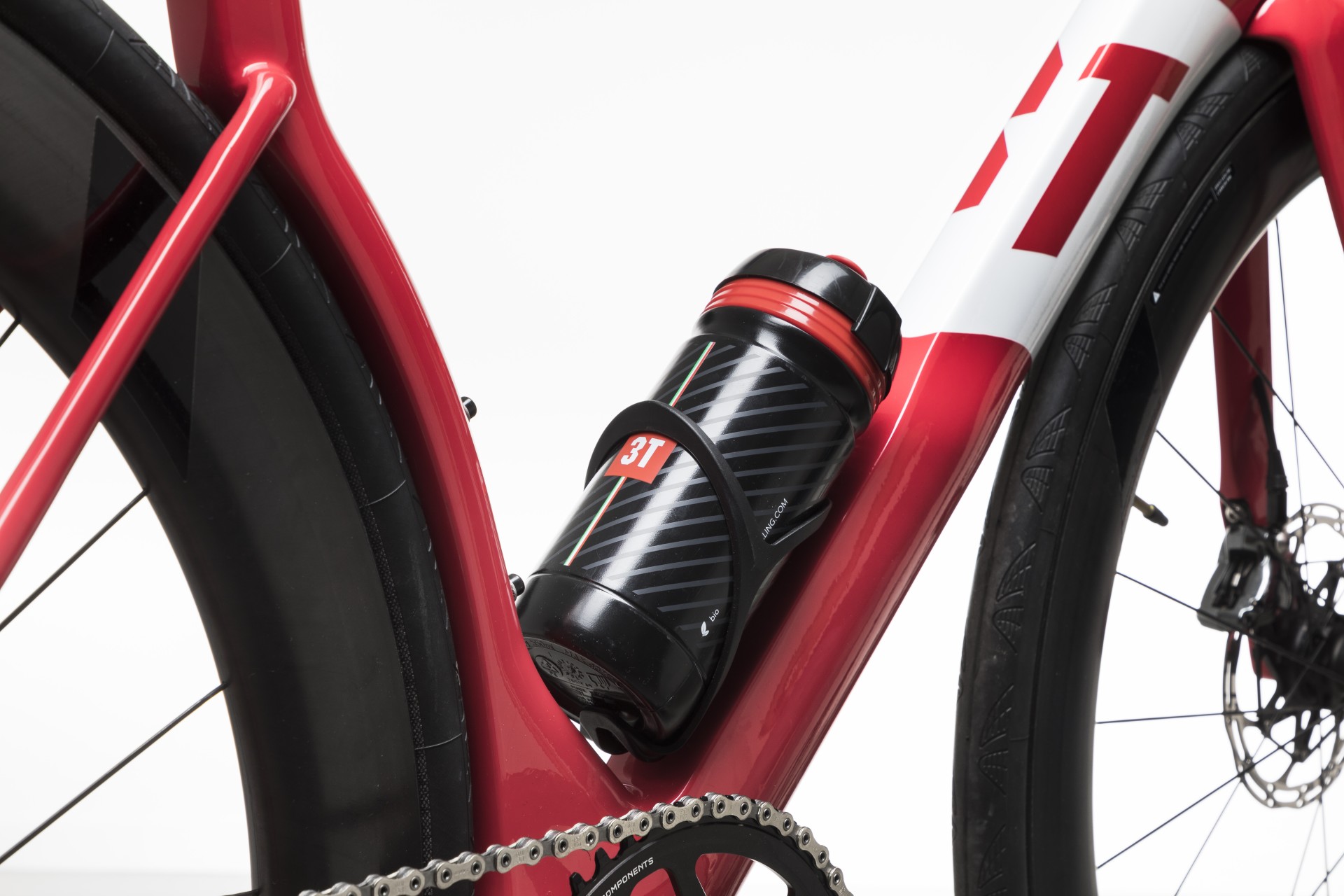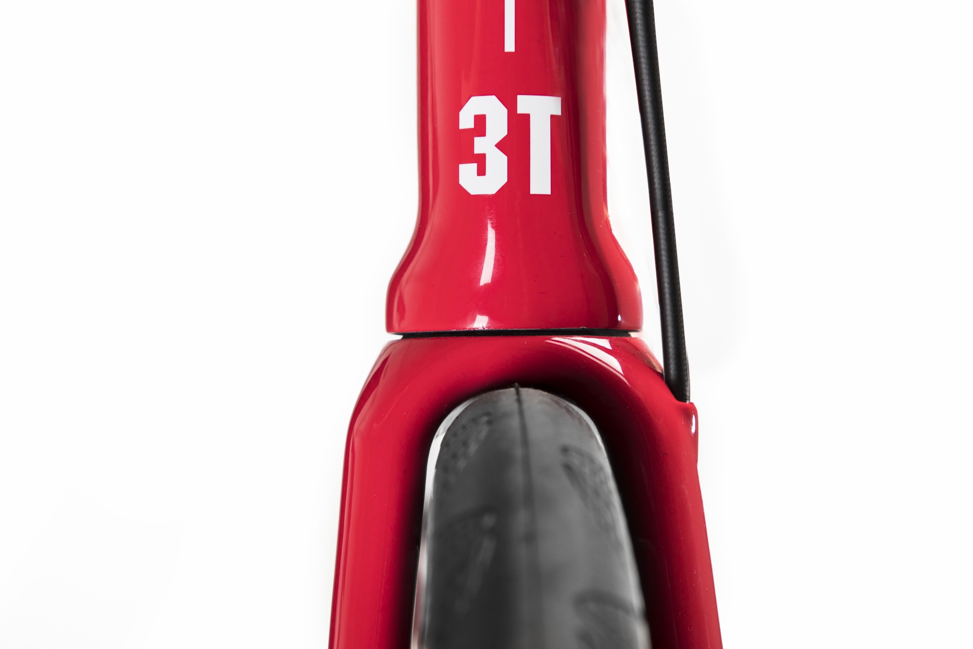 Dopo aver reinventato la bicicletta da avventura creando la bella Exploro, prima (e unica…) aero gravel sul mercato, 3T ha deciso di dare un nuovo significato al concetto di aero road bike.L’obiettivo che ha guidato il progetto Strada è stato creare una bicicletta che permettesse di godere di quel comfort che su una bici aero è pressoché impossibile trovare ma senza rinunciare a quelle caratteristiche imprescindibili per questa tipologia di mezzi. Come? Lavorando su tre aspetti: la misura delle gomme, la forma dei tubi e la trasmissione.LE GOMME PRIMA DI TUTTOTutto ruota intorno a coperture da 28 mm, capaci di garantire un comfort superiore senza pagare pressoché nulla in termini di scorrevolezza. A chi obietta che gomme larghe siano poco efficienti in termini aerodinamici 3T risponde con un telaio progettato per questa misura, ossia capace di ottimizzare i flussi con sezioni e profili ad-hoc. L’esempio più evidente sono la forcella Fundi, che adotta una testa ultra bassa e un transizione di profili che permettono al fodero di schermare la pinza freno, e i down e seat tube Arcfoil disegnati secondo le forme Squaero (che caratterizzano anche la Exploro), ma con profili curvi anziché piatti per seguire e favorire esattamente l’andamento dei flussi.TRASMISSIONE 1xAERODi tutta l’evoluzione che ha interessato il mondo aero negli ultimi 20 anni, nulla ha riguardato la trasmissione: così hanno pensato in 3T quando è stato deciso di eliminare l’ingombro del deragliatore e della seconda corona, adottando una trasmissione 1×11… I benefici in termini di riduzione di peso, di miglioramento dei flussi e di semplicità del sistema sono stati ritenuti superiori al doversi accontentare di 11 rapporti in luogo dei 14 effettivi di cui si dispone con una trasmissione tradizionale 2×11 (e poi c’è chi sta già lavorando alla soluzione 1×12 dedicata alla strada).Inoltre, per garantire una spaziatura più adatta allo stile e alle abitudini di ciascuno, 3T ha realizzato una cassetta 9-32, proposta in due versioni: Bailout più piena in basso (9-10-11-12-13-15-17-19-22-26-32) e Overdrive in alto (9-10-12-13-15-17-19-22-25-28-32).ANCHE COCKPIT E REGGISELLAStrada non è però l’unica novità presentata da 3T. Allo stand erano infatti esposte anche tre pieghe, due dedicate alla strada e una specifica per il Gravel, un attacco manubrio e un reggisella con offset regolabile.Superergo, Superleggera e Superghiaia sono le tre nuove pieghe rispettivamente pensate per privilegiare il comfort, la leggerezza abbinata a un design classico e il controllo nell’utilizzo su bici gravel.Apto è invece il nome dell’attacco manubrio, in lega leggera, con filettatura sulla calotta anziché sul corpo, disponibile nelle lunghezze da 70 a 150 mm e con inclinazione di +/- 6° e +/- 17°. Per finire, il nuovo reggisella in fibra di carbonio Zero25, con attacco reversibile per offrire due opzioni di off-set 0 e 25 mm.