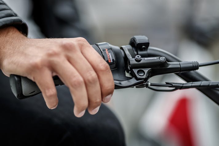 cambio Shimano Nexus a 5 velocità (specifico per e-Bike) inserito nel mozzo posteriore, che non richiede manutenzioni particolari e assicura la massima fluidità, agendo nella sostanza come un variatore automatico; ha corona da 40 denti e pignone da 24 denti.La