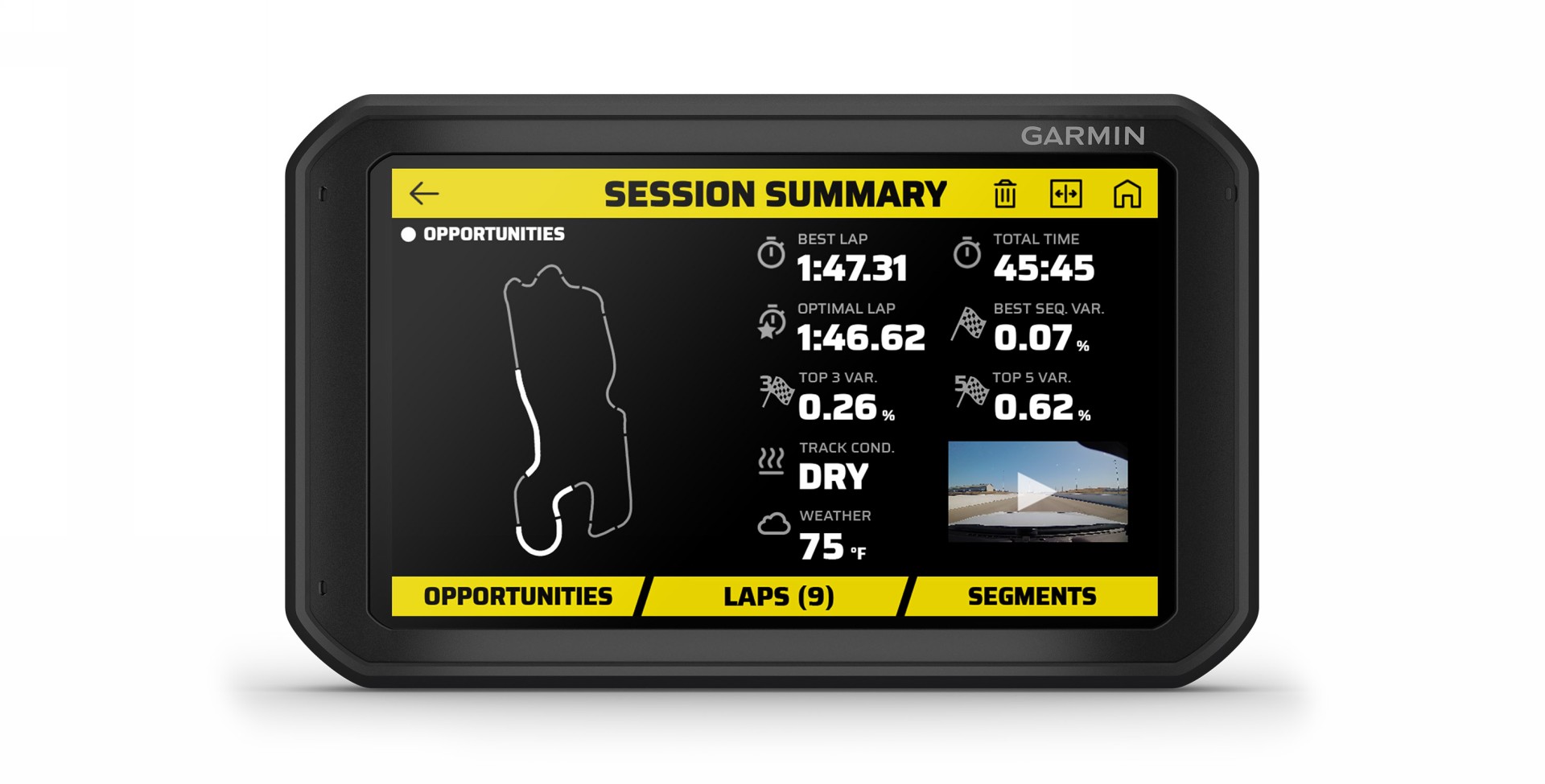 Appena terminata la sessione in pista, Garmin Catalyst fornisce un’analisi immediata della prestazione, evidenziando sullo schermo le aree di miglioramento. Tutto questo in modo intuitivo e semplice, senza dover scaricare le informazioni acquisite o configurare grafici. Tutti i dati registrati sono naturalmente accessibili anche da un dispositivo mobile o da un computer utilizzando la piattaforma Garmin Connect.