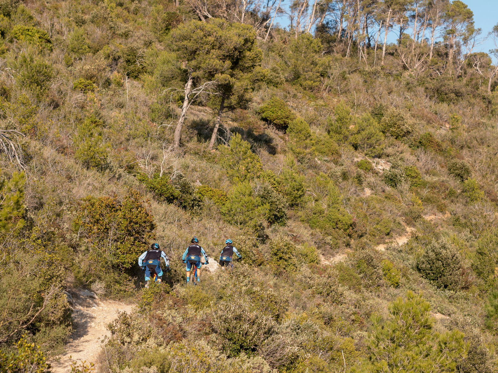 Tre nomi forti nei rispettivi ambiti, quelli di Giant, Vibram e Vittorio “Vitto” Gambirasio. Tre nomi di cui l’ultimo, manco a farlo apposta, riunisce le iniziali degli altri due… Motivo per cui è stato ancora più facile mettersi d’accordo per dare vita a un bel progetto che parla di gare ma, soprattutto, di formazione di giovani talenti.Si chiama Giant VG Squadra Corse e l’esperto Vitto, già tricolore Enduro, campione Superenduro, capace di dire la sua anche in DH, XC e Ciclocross vestirà i panni di atleta, team manager e chioccia, sotto le cui ali stanno crescendo le giovani (e concrete) promesse Tommaso Francardo e Guglielmo Abete. Abbiamo pedalato insieme a loro sui favolosi trail di Finale Ligure, parlando di questa nuova avventura che sfocerà nella partecipazione al primo Campionato del Mondo eMTB UCI.