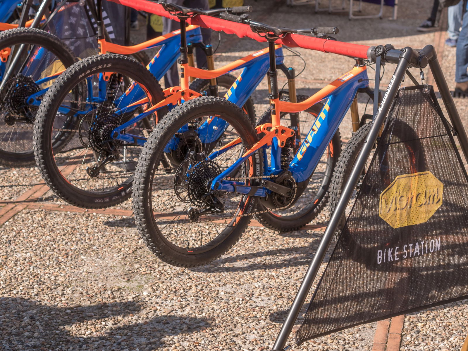 L’occasione e la compagnia sono state le migliori per provare le nuove Trance E+ SX Pro 0, bici con la quale Vitto correrà la prossima stagione e che, finalmente, porta anche Giant nel mondo delle eMTB con batteria integrata. È una Enduro/All Mountain assistita da una power unit in un certo senso home-made: Giant ha infatti sfruttato la sua competenza ingegneristica per progettare, in collaborazione con Yamaha, il motore “SyncDrive Pro” da 250W, equipaggiato con batteria Giant EnergyPak 500 e centralina di controllo RideControl One. Capace di offrire fino al 360% di assistenza alla pedalata, la drive-unit di Giant assicura una pedalata rotonda, dolce e progressiva, che asseconda efficacemente gli sforzi del biker anche sulle salite più sconnesse. Questo grazie alla tecnologia PedalPlus in cui 4 sensori di coppia permettono di misurare la forza che il rider sta esercitando sui pedali e di variare in automatico l’erogazione del motore. Le modalità di assistenza sono 5, ma a me non è mai capitato di esigere nemmeno la terza… Il sistema di carica Smart Charger a 6 Ampere permette di arrivare al 60% di autonomia in un’ora e mezza di carica: non male per chi ha bisogno di una carica extra durante i giri più lunghi e non vuole perdere tempo in pause infinite. Infine, in un’ottica di massima personalizzazione del sistema, è disponibile l’app “Giant E-bike”, che via Bluetooth permette di intervenire sul tuning attraverso lo smartphone.Il telaio della Trance E+ è in alluminio Aluxx SL con sospensione Maestro caratterizzata da 4 pivot e 2 link che si muovono in modo contrapposto per offrire maggior efficienza in pedalata e frenata. La geometria è basata su angoli di 66,5° (lo sterzo) e 74° (sella), con top tube da 61 cm in taglia M e 63 cm in taglia L. Il carro posteriore misura 469,5 mm, misura scelta per offrire più grip e stabilità in salita e ottimizzare il lavoro del motore. Nella “nostra” versione SX PRO 0 la componentistica è al top, con forcella e ammortizzatore FOX (Float Factory da 160 mm la prima, Factory DH X2 Coil da 140 mm il secondo), trasmissione SRAM X01 Eagle, freni SRAM Code R con rotori da 200 mm, cockpit Giant Contact SL 35 Trail con piega da 800 mm, reggisella telescopico Giant Contact Switch, ruote Giant AM con 35 mm di canale interno e pneumatici Maxxis Minion DHF/DHR II Exo TR Dual Compound 27,5×2.6”.Ma l’occasione è stata un ottimo pretesto per provare le suole che Vibram ha sviluppato proprio per l’Enduro e il Gravity, con mescole specifiche per le condizioni tipiche di queste discipline.VIBRAM OPEN FLOW GENIUS Realizzata in mescola Megagrip, già ampiamente utilizzata per la corsa in montagna e l’approach tecnico, dove il grip su superfici bagnate è fondamentale. Pensata per gli amanti della mountain bike e particolarmente indicata a chi si cimenta in discipline come il downhill e l’enduro, Flow Genius LB mixa i vantaggi della mescola Vibram Megagrip con la leggerezza della tecnologia Vibram Litebase. Il design è studiato per enfatizzare la trazione in fase di camminata su terreni sconnessi e fangosi.VIBRAM OPEN MAERENGUE La suola Maerengue nasce dalla combinazione delle mescole Vibram Megagrip e Idrogrip. La prima è posizionata nella aree di punta e tacco, con tasselli scolpiti e disposti in modo tale da favorire il self cleaning garantendo trazione in fase di salita e frenata in fase di discesa. Per l’area centrale della suola, quella a contatto con il pedale, è utilizzata invece la mescola Idrogrip, che offre un’ottima presa sul pedale con scanalature che favoriscono l’incastro dei pin. Estremamente versatile, Vibram Maerengue offre un ottimo equilibrio tra aderenza su pedali flat e trazione su terreni sconnessi mentre si cammina.