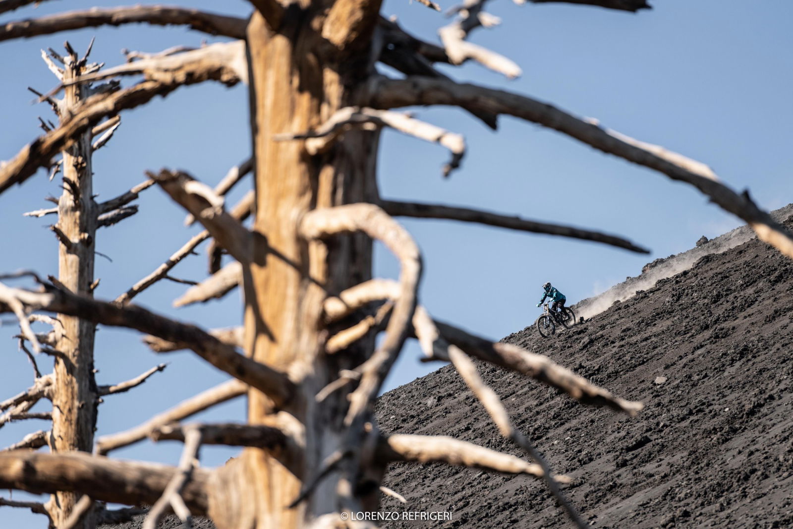 In quattro giorni di freeride estremo, affrontando crateri fumanti e “sabbioni” di cenere, i rider hanno percorso entrambi i versanti del vulcano. Versante Sud, il primo esplorato, il più facile da raggiungere. Si sale in funivia fino a 2.990 metri per poi proseguire in portage (bici in spalla, per i non addetti…) verso la Valle del Bove, per poi godersi km di discese nella black sand tipica dei vulcani, arrivando ai crateri Silvestri.