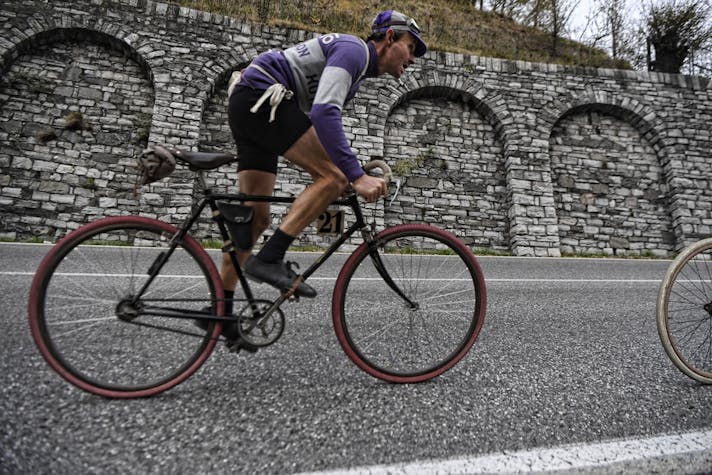 PROLOGOCento anni fa, era il 4 novembre 1917, nella fase più cruenta del grande conflitto mondiale, prese il via la 13ª edizione del Giro di Lombardia. Incredibile come solo undici giorni dopo la tragica battaglia di Caporetto (24 ottobre), che ci costò 12.000 morti, 30.000 feriti e oltre 260.000 prigionieri, la Gazzetta dello Sport riuscì a far disputare la corsa che sarebbe in seguito diventata la “Classica delle foglie morte”. Quasi come se l’Italia volesse distogliere occhi e pensieri da ciò che stava accadendo nelle trincee al confine con l’Austria e che ci volle un altro anno di guerra per trasformare in armistizio e vittoria.UN GIRO “MACCHIATO” DI ROSAMa torniamo alla parte più lieta della storia, ossia quella a pedali. L’edizione del Giro di Lombardia di quell’anno riservò una sorpresa, che ci piace raccontare citando le parole di uno degli organizzatori della rievocazione, da leggere con intonazione e timbro tipici dei documentari dell’Istituto Luce…”Alla partenza da Milano, il ciclismo tricolore schiera al via le migliori forze: Girardengo, Torricelli, Aimo, Sivocci, Gremo e Belloni (pur con scarso allenamento); avrebbero duellato con i campioni stranieri, su tutti il belga Thys, detto “il Bassotto”, sergente dell’aeronautica e già vincitore di due Tour de France e il “Campione dei campioni”, vale a dire il francese Henry Pelissier. Tra la sorpresa e lo scetticismo generale, al via col numero 74 anche Alfonsina Strada, signorina gagliarda con garretti d’acciaio e cuore immenso, unica donna capace di misurarsi con i ciclisti uomini.”Ecco la sorpresa: una donna che contro una tradizione e una società maschilista e conformista, non solo prese il via, ma giunse al traguardo portando a compimento una corsa che le costò anche oltraggi e sbeffeggi lungo il percorso.AMORE E GAMBEQuella della 13ª edizione del Giro di Lombardia è solo una delle incredibili rievocazioni organizzate dalla Nova UVI (l’Unione Velocipedistica Italiana era l’antenata della FCI), un’associazione ligure di Varazze, che si prefigge lo scopo di promuovere il ciclismo storico con particolare riferimento ai primi anni del ‘900.Due altre “pazzie” sono state la Milano-Bologna, rievocazione della prima tappa del primo Giro d’Italia del 1909, 397 km da percorrere in sella a biciclette rigorosamente ante 1910, con partenza da Piazzale Loreto alle ore 02:53. La Lucca-Roma, rievocazione della tappa più lunga (430 km) mai corsa in un Giro d’Italia (era l’edizione del 1914), per tralasciare varie edizioni della Classicissima, la Milano-Sanremo, banale sgambata con partenza allo scoccar della mezzanotte…Al confronto di questi numeri, il recente Giro di Lombardia, con i suoi soli 204 km, passa quasi in secondo piano, ma se si pensa che lo si è pedalato su biciclette risalenti agli Anni 20 in ferro, con cerchi in legno, freno a tampone e mono rapporto, allora si torna a dare il giusto valore alle cose.Il programma della rievocazione di oggi replica fedelmente quello del 1917:– ore 5:45 ritrovo dall’Arco della Pace, a Milano, per le operazioni di punzonatura. Professionisti, numero nero su tela rosa. Dilettanti, numero nero su tela bianca– ore 6:15 partenza con passaggio da Varese, Brinzio, Como, Lecco e Monza– ore 18:00 arrivo al Parco Trotter di via Giacosa, Milano.Previsti 4 controlli e 4 ristori veloci a Gallarate, sul Brinzio, a Erba e Calco ma ognuno deve provvedere in autonomia ai viveri di conforto durante la pedalata come facevano i non accasati. L’assistenza al seguito è garantita dagli amici del Ghisallo nel Comune di Magreglio (CO).OMAGGIO AD ALFONSINAAlle 5:45, all’Arco della Pace, si schierano 22 impavidi eroi velocipedisti di cui tre donne decise a onorare il ricordo di Alfonsina Strada (nomen omen), e prendono il via sotto lo sguardo forse più attonito che incuriosito di chi già animava la città.A Gallarate il primo foglio firma e dopo Varese, verso il Brinzio, la prima tosta salita seguita da una veloce discesa resa ancora più infida dalla pioggia, che nel frattempo ha fatto la sua comparsa. L’acqua smette di cadere verso Erba e il gruppo procede compatto fin dopo Lecco con una prima scrematura sulla salita della Cappelletta all’uscita della città. Ben presto il gruppo torna a riunirsi e le tre ragazze lo portano ai trenta all’ora fino alla temuta salita della Cicognola, a quaranta chilometri dal traguardo. Scollinano tutti indenni e, con il sole che comincia a scendere dietro le montagne, raggiungono Milano con perfetto tempismo al grido di “Viva le donne, viva il ciclismo!!!”LE ALTRE PROTAGONISTEVa bene i quadricipiti e i polpacci, va bene la fatica e la tenacia, ma non bisogna dimenticare che a portare a termine queste avventure sono anche le biciclette.E non si parla di biciclette qualsiasi, qui si pedala su pezzi di antiquariato che hanno anche cento anni… Per lo più francesi, ci spiega Claudio Palazzi (che ha una straordinaria raccolta con pezzi pregiati anche dell’800), perché gli italiani hanno guadagnato terreno e consensi dopo i transalpini, a partire dal 1910.Quindi diverse Peugeot e Automoto, Devaux, Wonder, Griffon, Olympia una tedesca Wolsit (marchio che sarà poi acquistato da Legnano).Telai in ferro, cerchi in legno (un’innovazione per avere ruote più leggere rispetto a quelle in metallo…) con freni Bawden a fascetta e pattini in sughero, palmer incollati (camere d’aria e copertoni arriveranno anni dopo), qualcuna con lampada a olio, tutte senza cambio e la maggior parte senza giro ruota, rapporti 46/18 o 46/20. Qualche manubrio “a baffo” e un po’ di “curve”, corone con disegni che esibiscono con orgoglio e raffinata eleganza i simboli o le iniziali della marca, doppia borraccia in metallo al manubrio, pesi incredibilmente contenuti anche sotto i 13 chili.Comunque, nel caso abbiate appena trovato nella cantina del nonno un cimelio e vi venisse voglia di provare il fascino del c