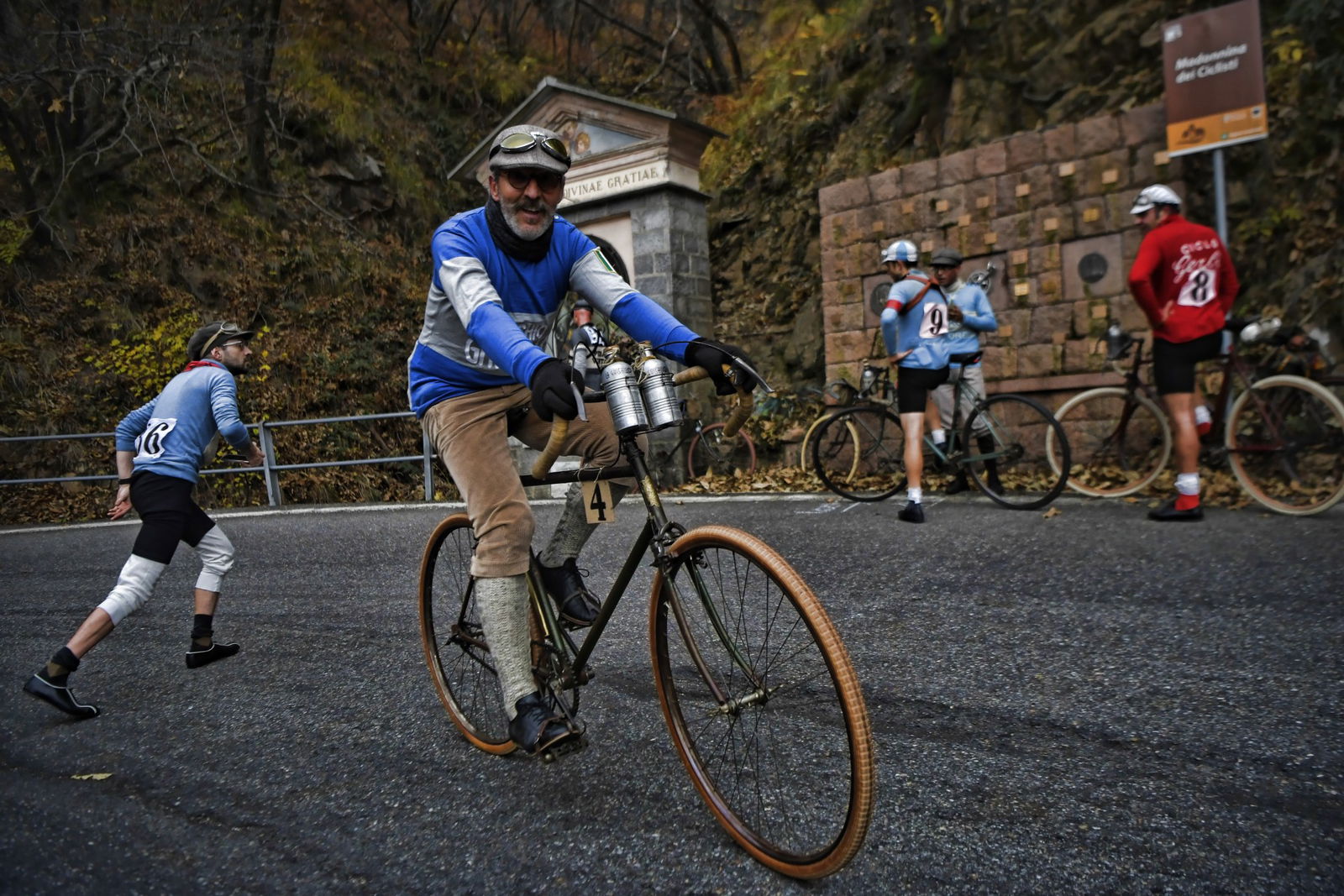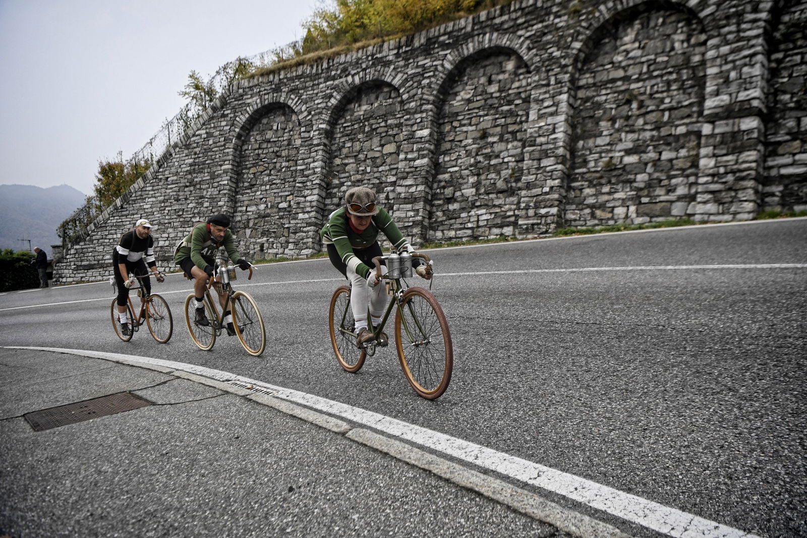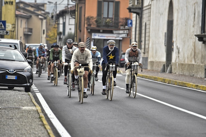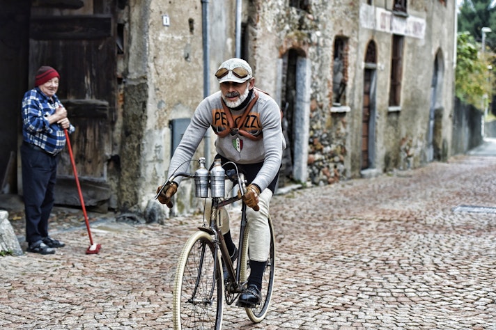 PROLOGOCento anni fa, era il 4 novembre 1917, nella fase più cruenta del grande conflitto mondiale, prese il via la 13ª edizione del Giro di Lombardia. Incredibile come solo undici giorni dopo la tragica battaglia di Caporetto (24 ottobre), che ci costò 12.000 morti, 30.000 feriti e oltre 260.000 prigionieri, la Gazzetta dello Sport riuscì a far disputare la corsa che sarebbe in seguito diventata la “Classica delle foglie morte”. Quasi come se l’Italia volesse distogliere occhi e pensieri da ciò che stava accadendo nelle trincee al confine con l’Austria e che ci volle un altro anno di guerra per trasformare in armistizio e vittoria.UN GIRO “MACCHIATO” DI ROSAMa torniamo alla parte più lieta della storia, ossia quella a pedali. L’edizione del Giro di Lombardia di quell’anno riservò una sorpresa, che ci piace raccontare citando le parole di uno degli organizzatori della rievocazione, da leggere con intonazione e timbro tipici dei documentari dell’Istituto Luce…”Alla partenza da Milano, il ciclismo tricolore schiera al via le migliori forze: Girardengo, Torricelli, Aimo, Sivocci, Gremo e Belloni (pur con scarso allenamento); avrebbero duellato con i campioni stranieri, su tutti il belga Thys, detto “il Bassotto”, sergente dell’aeronautica e già vincitore di due Tour de France e il “Campione dei campioni”, vale a dire il francese Henry Pelissier. Tra la sorpresa e lo scetticismo generale, al via col numero 74 anche Alfonsina Strada, signorina gagliarda con garretti d’acciaio e cuore immenso, unica donna capace di misurarsi con i ciclisti uomini.”Ecco la sorpresa: una donna che contro una tradizione e una società maschilista e conformista, non solo prese il via, ma giunse al traguardo portando a compimento una corsa che le costò anche oltraggi e sbeffeggi lungo il percorso.AMORE E GAMBEQuella della 13ª edizione del Giro di Lombardia è solo una delle incredibili rievocazioni organizzate dalla Nova UVI (l’Unione Velocipedistica Italiana era l’antenata della FCI), un’associazione ligure di Varazze, che si prefigge lo scopo di promuovere il ciclismo storico con particolare riferimento ai primi anni del ‘900.Due altre “pazzie” sono state la Milano-Bologna, rievocazione della prima tappa del primo Giro d’Italia del 1909, 397 km da percorrere in sella a biciclette rigorosamente ante 1910, con partenza da Piazzale Loreto alle ore 02:53. La Lucca-Roma, rievocazione della tappa più lunga (430 km) mai corsa in un Giro d’Italia (era l’edizione del 1914), per tralasciare varie edizioni della Classicissima, la Milano-Sanremo, banale sgambata con partenza allo scoccar della mezzanotte…Al confronto di questi numeri, il recente Giro di Lombardia, con i suoi soli 204 km, passa quasi in secondo piano, ma se si pensa che lo si è pedalato su biciclette risalenti agli Anni 20 in ferro, con cerchi in legno, freno a tampone e mono rapporto, allora si torna a dare il giusto valore alle cose.Il programma della rievocazione di oggi replica fedelmente quello del 1917:– ore 5:45 ritrovo dall’Arco della Pace, a Milano, per le operazioni di punzonatura. Professionisti, numero nero su tela rosa. Dilettanti, numero nero su tela bianca– ore 6:15 partenza con passaggio da Varese, Brinzio, Como, Lecco e Monza– ore 18:00 arrivo al Parco Trotter di via Giacosa, Milano.Previsti 4 controlli e 4 ristori veloci a Gallarate, sul Brinzio, a Erba e Calco ma ognuno deve provvedere in autonomia ai viveri di conforto durante la pedalata come facevano i non accasati. L’assistenza al seguito è garantita dagli amici del Ghisallo nel Comune di Magreglio (CO).OMAGGIO AD ALFONSINAAlle 5:45, all’Arco della Pace, si schierano 22 impavidi eroi velocipedisti di cui tre donne decise a onorare il ricordo di Alfonsina Strada (nomen omen), e prendono il via sotto lo sguardo forse più attonito che incuriosito di chi già animava la città.A Gallarate il primo foglio firma e dopo Varese, verso il Brinzio, la prima tosta salita seguita da una veloce discesa resa ancora più infida dalla pioggia, che nel frattempo ha fatto la sua comparsa. L’acqua smette di cadere verso Erba e il gruppo procede compatto fin dopo Lecco con una prima scrematura sulla salita della Cappelletta all’uscita della città. Ben presto il gruppo torna a riunirsi e le tre ragazze lo portano ai trenta all’ora fino alla temuta salita della Cicognola, a quaranta chilometri dal traguardo. Scollinano tutti indenni e, con il sole che comincia a scendere dietro le montagne, raggiungono Milano con perfetto tempismo al grido di “Viva le donne, viva il ciclismo!!!”LE ALTRE PROTAGONISTEVa bene i quadricipiti e i polpacci, va bene la fatica e la tenacia, ma non bisogna dimenticare che a portare a termine queste avventure sono anche le biciclette.E non si parla di biciclette qualsiasi, qui si pedala su pezzi di antiquariato che hanno anche cento anni… Per lo più francesi, ci spiega Claudio Palazzi (che ha una straordinaria raccolta con pezzi pregiati anche dell’800), perché gli italiani hanno guadagnato terreno e consensi dopo i transalpini, a partire dal 1910.Quindi diverse Peugeot e Automoto, Devaux, Wonder, Griffon, Olympia una tedesca Wolsit (marchio che sarà poi acquistato da Legnano).Telai in ferro, cerchi in legno (un’innovazione per avere ruote più leggere rispetto a quelle in metallo…) con freni Bawden a fascetta e pattini in sughero, palmer incollati (camere d’aria e copertoni arriveranno anni dopo), qualcuna con lampada a olio, tutte senza cambio e la maggior parte senza giro ruota, rapporti 46/18 o 46/20. Qualche manubrio “a baffo” e un po’ di “curve”, corone con disegni che esibiscono con orgoglio e raffinata eleganza i simboli o le iniziali della marca, doppia borraccia in metallo al manubrio, pesi incredibilmente contenuti anche sotto i 13 chili.Comunque, nel caso abbiate appena trovato nella cantina del nonno un cimelio e vi venisse voglia di provare il fascino del c