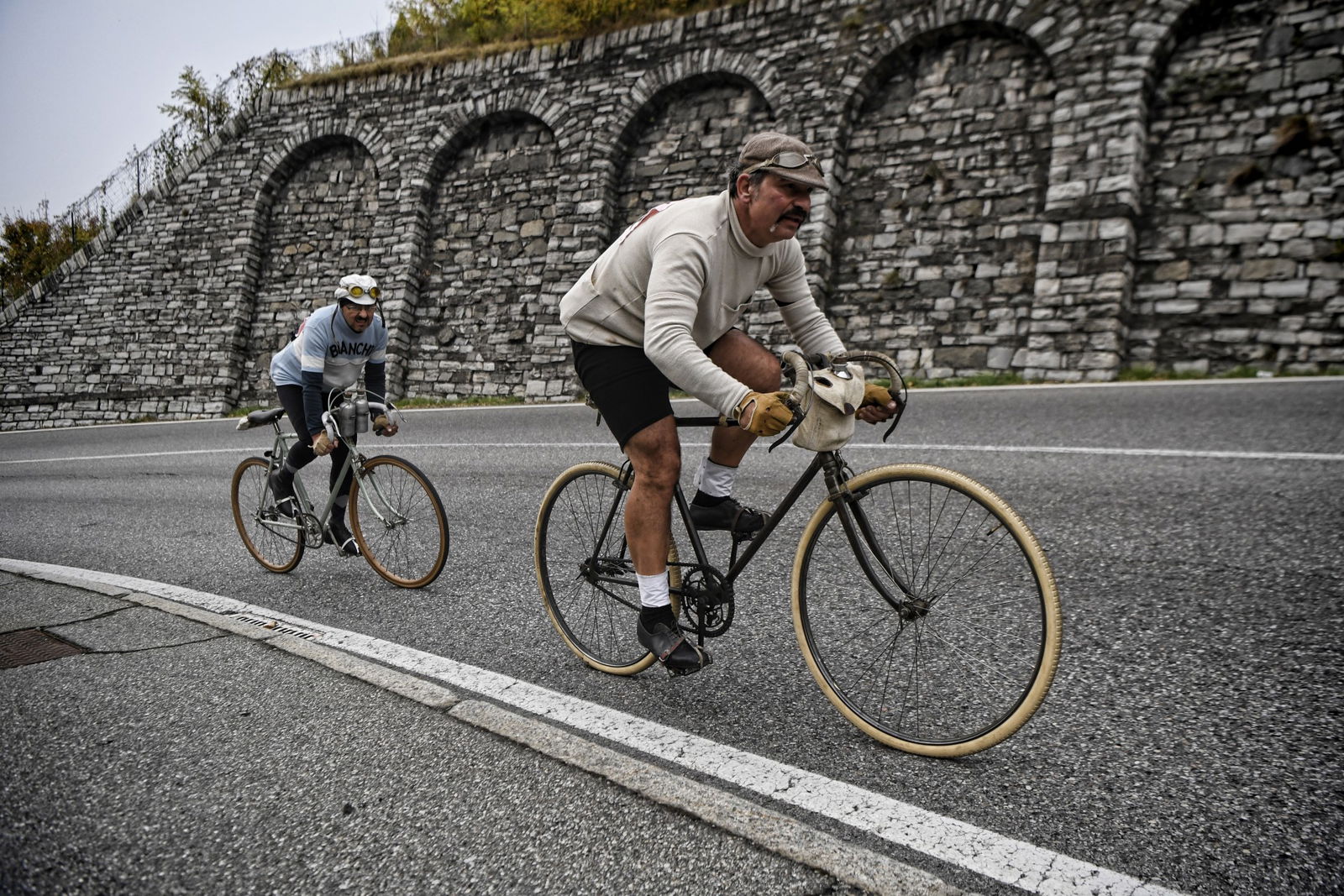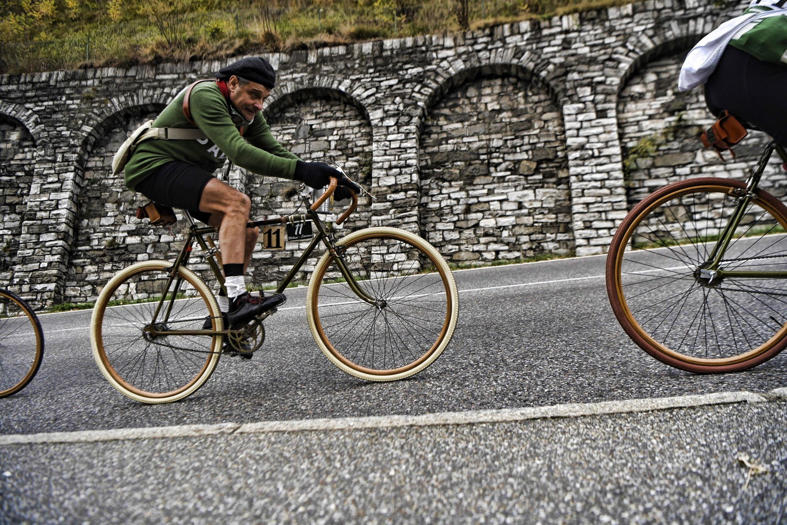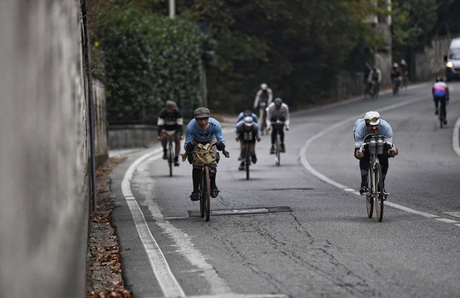 PROLOGOCento anni fa, era il 4 novembre 1917, nella fase più cruenta del grande conflitto mondiale, prese il via la 13ª edizione del Giro di Lombardia. Incredibile come solo undici giorni dopo la tragica battaglia di Caporetto (24 ottobre), che ci costò 12.000 morti, 30.000 feriti e oltre 260.000 prigionieri, la Gazzetta dello Sport riuscì a far disputare la corsa che sarebbe in seguito diventata la “Classica delle foglie morte”. Quasi come se l’Italia volesse distogliere occhi e pensieri da ciò che stava accadendo nelle trincee al confine con l’Austria e che ci volle un altro anno di guerra per trasformare in armistizio e vittoria.UN GIRO “MACCHIATO” DI ROSAMa torniamo alla parte più lieta della storia, ossia quella a pedali. L’edizione del Giro di Lombardia di quell’anno riservò una sorpresa, che ci piace raccontare citando le parole di uno degli organizzatori della rievocazione, da leggere con intonazione e timbro tipici dei documentari dell’Istituto Luce…”Alla partenza da Milano, il ciclismo tricolore schiera al via le migliori forze: Girardengo, Torricelli, Aimo, Sivocci, Gremo e Belloni (pur con scarso allenamento); avrebbero duellato con i campioni stranieri, su tutti il belga Thys, detto “il Bassotto”, sergente dell’aeronautica e già vincitore di due Tour de France e il “Campione dei campioni”, vale a dire il francese Henry Pelissier. Tra la sorpresa e lo scetticismo generale, al via col numero 74 anche Alfonsina Strada, signorina gagliarda con garretti d’acciaio e cuore immenso, unica donna capace di misurarsi con i ciclisti uomini.”Ecco la sorpresa: una donna che contro una tradizione e una società maschilista e conformista, non solo prese il via, ma giunse al traguardo portando a compimento una corsa che le costò anche oltraggi e sbeffeggi lungo il percorso.AMORE E GAMBEQuella della 13ª edizione del Giro di Lombardia è solo una delle incredibili rievocazioni organizzate dalla Nova UVI (l’Unione Velocipedistica Italiana era l’antenata della FCI), un’associazione ligure di Varazze, che si prefigge lo scopo di promuovere il ciclismo storico con particolare riferimento ai primi anni del ‘900.Due altre “pazzie” sono state la Milano-Bologna, rievocazione della prima tappa del primo Giro d’Italia del 1909, 397 km da percorrere in sella a biciclette rigorosamente ante 1910, con partenza da Piazzale Loreto alle ore 02:53. La Lucca-Roma, rievocazione della tappa più lunga (430 km) mai corsa in un Giro d’Italia (era l’edizione del 1914), per tralasciare varie edizioni della Classicissima, la Milano-Sanremo, banale sgambata con partenza allo scoccar della mezzanotte…Al confronto di questi numeri, il recente Giro di Lombardia, con i suoi soli 204 km, passa quasi in secondo piano, ma se si pensa che lo si è pedalato su biciclette risalenti agli Anni 20 in ferro, con cerchi in legno, freno a tampone e mono rapporto, allora si torna a dare il giusto valore alle cose.Il programma della rievocazione di oggi replica fedelmente quello del 1917:– ore 5:45 ritrovo dall’Arco della Pace, a Milano, per le operazioni di punzonatura. Professionisti, numero nero su tela rosa. Dilettanti, numero nero su tela bianca– ore 6:15 partenza con passaggio da Varese, Brinzio, Como, Lecco e Monza– ore 18:00 arrivo al Parco Trotter di via Giacosa, Milano.Previsti 4 controlli e 4 ristori veloci a Gallarate, sul Brinzio, a Erba e Calco ma ognuno deve provvedere in autonomia ai viveri di conforto durante la pedalata come facevano i non accasati. L’assistenza al seguito è garantita dagli amici del Ghisallo nel Comune di Magreglio (CO).OMAGGIO AD ALFONSINAAlle 5:45, all’Arco della Pace, si schierano 22 impavidi eroi velocipedisti di cui tre donne decise a onorare il ricordo di Alfonsina Strada (nomen omen), e prendono il via sotto lo sguardo forse più attonito che incuriosito di chi già animava la città.A Gallarate il primo foglio firma e dopo Varese, verso il Brinzio, la prima tosta salita seguita da una veloce discesa resa ancora più infida dalla pioggia, che nel frattempo ha fatto la sua comparsa. L’acqua smette di cadere verso Erba e il gruppo procede compatto fin dopo Lecco con una prima scrematura sulla salita della Cappelletta all’uscita della città. Ben presto il gruppo torna a riunirsi e le tre ragazze lo portano ai trenta all’ora fino alla temuta salita della Cicognola, a quaranta chilometri dal traguardo. Scollinano tutti indenni e, con il sole che comincia a scendere dietro le montagne, raggiungono Milano con perfetto tempismo al grido di “Viva le donne, viva il ciclismo!!!”LE ALTRE PROTAGONISTEVa bene i quadricipiti e i polpacci, va bene la fatica e la tenacia, ma non bisogna dimenticare che a portare a termine queste avventure sono anche le biciclette.E non si parla di biciclette qualsiasi, qui si pedala su pezzi di antiquariato che hanno anche cento anni… Per lo più francesi, ci spiega Claudio Palazzi (che ha una straordinaria raccolta con pezzi pregiati anche dell’800), perché gli italiani hanno guadagnato terreno e consensi dopo i transalpini, a partire dal 1910.Quindi diverse Peugeot e Automoto, Devaux, Wonder, Griffon, Olympia una tedesca Wolsit (marchio che sarà poi acquistato da Legnano).Telai in ferro, cerchi in legno (un’innovazione per avere ruote più leggere rispetto a quelle in metallo…) con freni Bawden a fascetta e pattini in sughero, palmer incollati (camere d’aria e copertoni arriveranno anni dopo), qualcuna con lampada a olio, tutte senza cambio e la maggior parte senza giro ruota, rapporti 46/18 o 46/20. Qualche manubrio “a baffo” e un po’ di “curve”, corone con disegni che esibiscono con orgoglio e raffinata eleganza i simboli o le iniziali della marca, doppia borraccia in metallo al manubrio, pesi incredibilmente contenuti anche sotto i 13 chili.Comunque, nel caso abbiate appena trovato nella cantina del nonno un cimelio e vi venisse voglia di provare il fascino del c