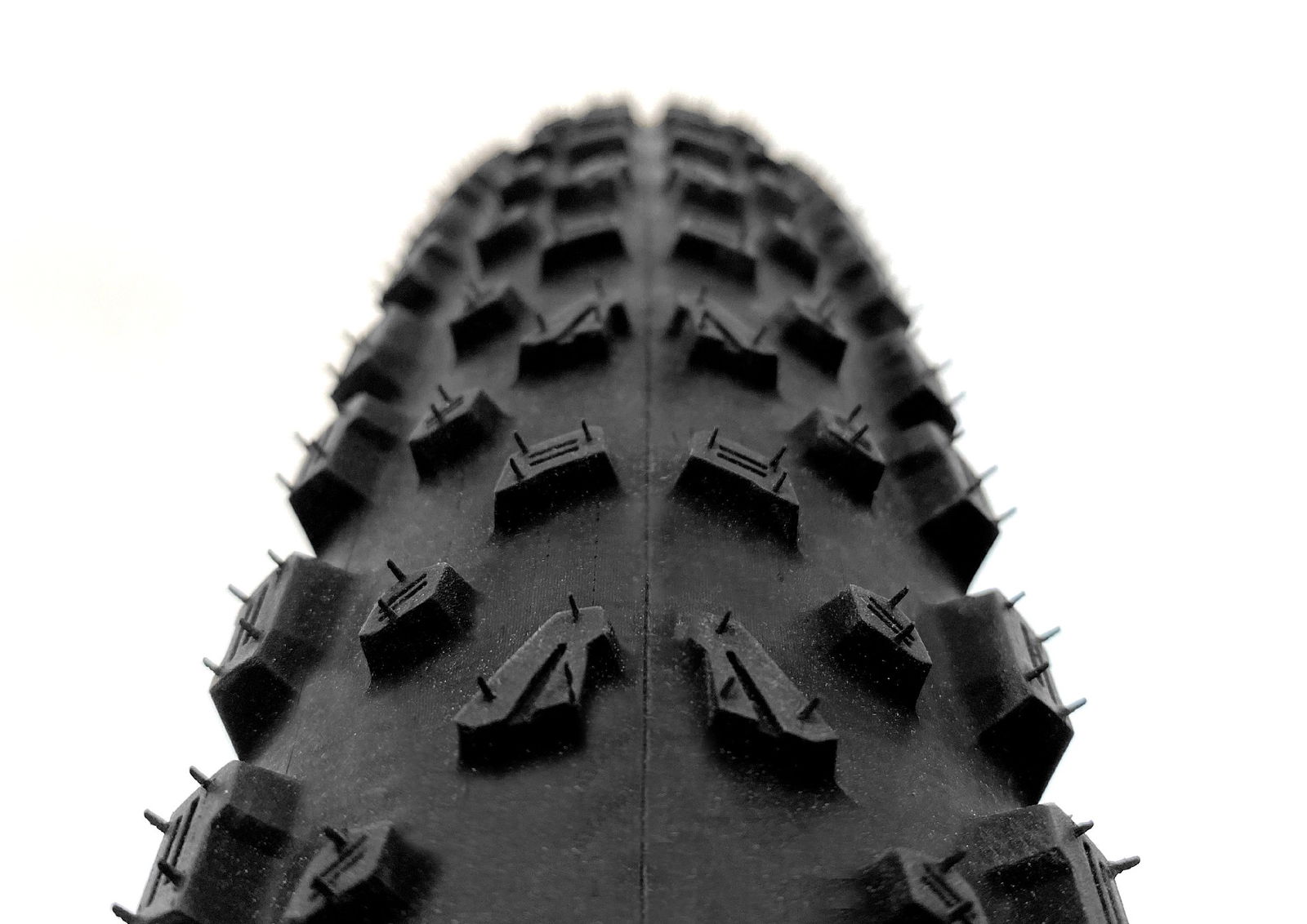 Il disegno del battistrada del Syerra deriva sia dall’Agarro che dal Mazza ma offre minor peso e migliore rotolamento. La tassellatura laterale pronunciata e il canale centrale ben definito assicurano un’ottima presa e un anticipo immediato in curva. L’intaglio progressivo dei tasselli garantisce la tenuta di strada nei cambi di direzione improvvisi. L’ampio spazio che divide i tasselli e gli intagli sugli stessi consentono al Syerra di affrontare agilmente superfici inconsistenti e di pulire velocemente il battistrada dai detriti. I tasselli centrali presentano uno scalino nella parte anteriore che aiuta a mantenere la velocità ma anche ad aggredire il terreno in salita e in frenata. Questa composizione dei tasselli consente velocità e maneggevolezza su terreni morbidi e duri e controllo estremo su terreni scivolosi.