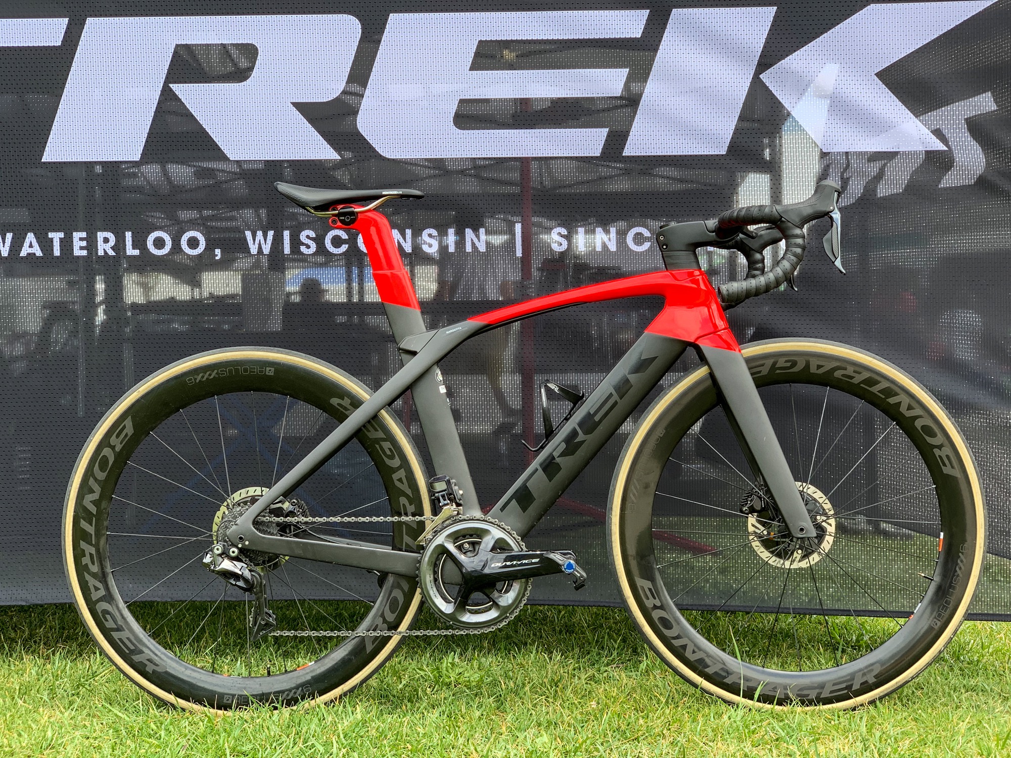Qualche riga sopra scrivevo della Trek Madone: gli amici di Trek Italia, sponsor principale della manifestazione, hanno invitato alcuni giornalisti a vivere in prima persona la Gran Fondo Squali, naturalmente in sella alle bici dell’azienda di Waterloo, Wisconsin. A me, che nei giorni precedenti la gara ho tempestato l’ufficio stampa con una raffica di domande sull’equipaggiamento tecnico che mi sarebbe stato fornito, hanno pensato – forse per zittirmi, e li capisco – di offrire il meglio della gamma.