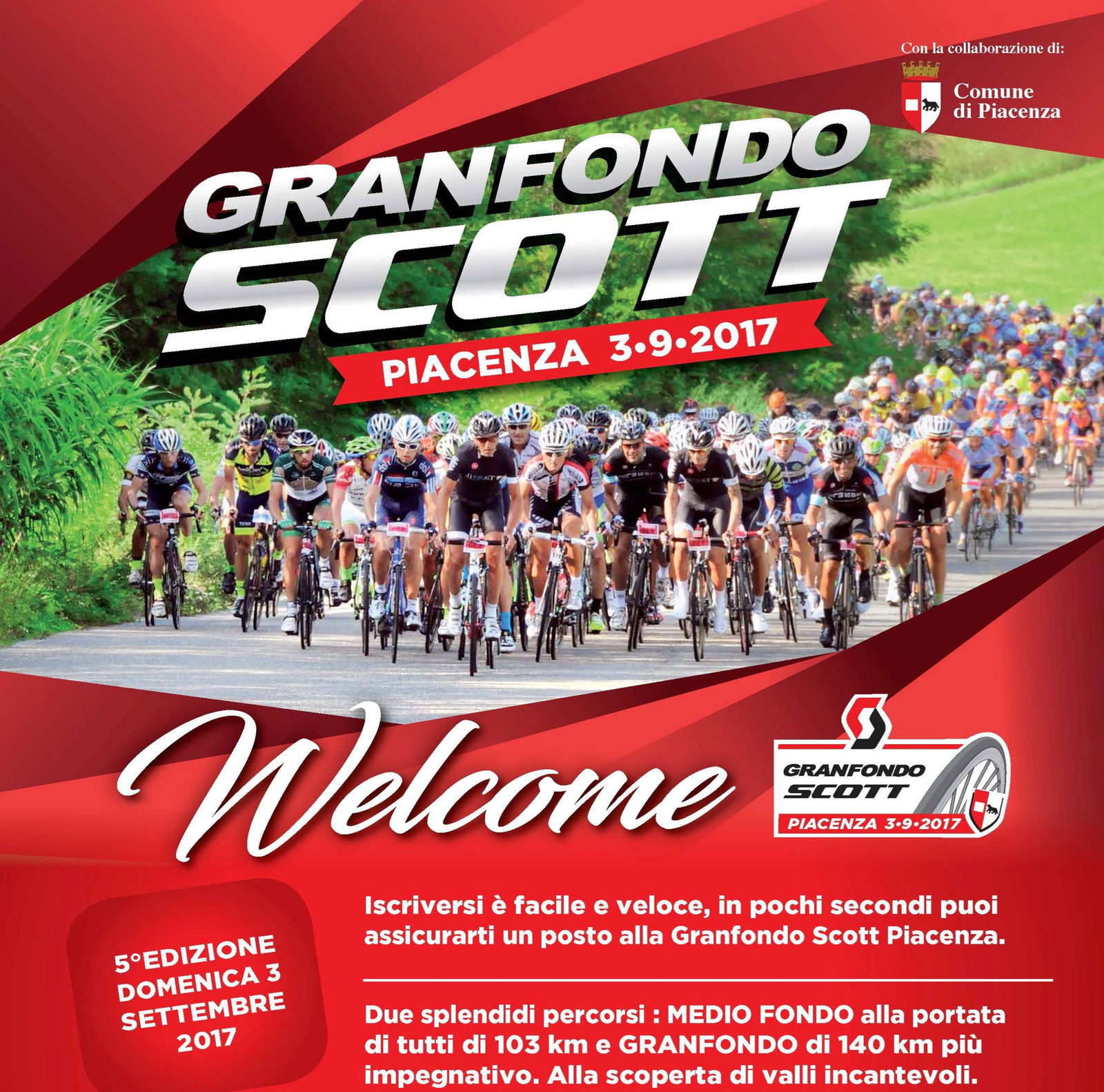 Vi piace pedalare in collina? Se volete farlo in compagnia di migliaia di altri ciclisti, e con la possibilità di mettere alla prova il vostro spirito agonistico, l’occasione giusta è la 5° edizione della Granfondo Scott, in programma il 3 settembre 2017 con partenza e arrivo a Piacenza Expo.La manifestazione propone due percorsi, caratterizzati da differente lunghezza e profilo altimetrico, ma che condividono parte dell’itinerario. La scelta degli organizzatori è di far precedere ai tratti in salita un avvicinamento in pianura, molto scorrevole, dove il gruppo è in grado di tenere medie elevate. Poi la salita, intervallata da tratti in falsopiano e in discesa, e il punto in cui i concorrenti possono decidere se affrontare il percorso lungo o quello medio. Le pendenze non troppo impegnative, la collocazione all’inizio di settembre, i paesaggi suggestivi fanno della Granfondo Scott un appuntamento interessante anche per i cicloturisti.Il percorso della Granfondo Scott è lungo 130 chilometri, con dislivello complessivo in salita pari a 2.266 metri; più abbordabile la Mediofondo, con 100 chilometri e 1.258 metri di ascesa totale.
