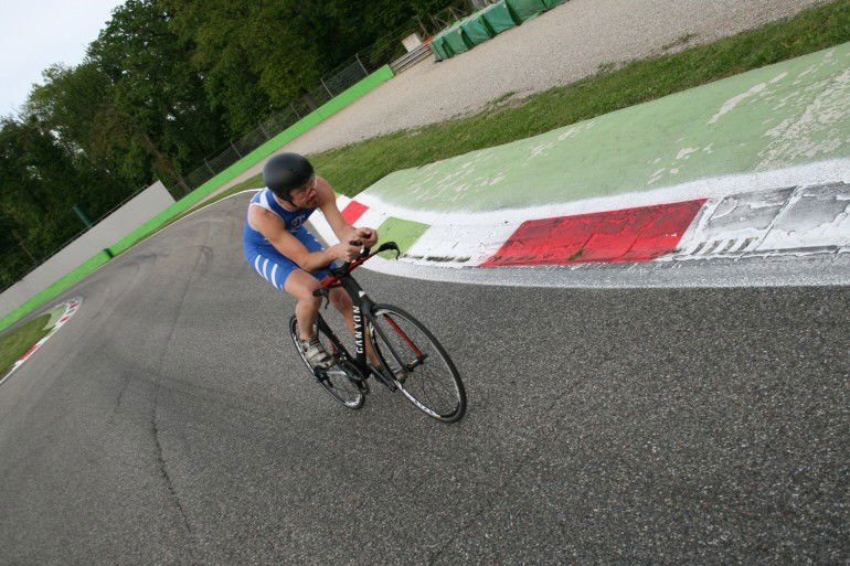 Le forme appuntite di questa bici vi ricordano qualcosa? Forse le avete viste poco tempo fa sfrecciare sul parquet di Londra, dove il britannico Alex Dowsett ha percorso la bellezza di 52.937 metri in 60 minuti, ottenendo il nuovo record dell’ora, poi battuto da Bradley Wiggins che ha portato il limite a 54,526 km. Oppure l’avrete vista le scorse settimane, con la livrea verde-blu del Team Movistar all’ombra delle palme del lungomare di Sanremo, dove si è corsa la prima bellissima tappa del Giro d’Italia 2015 e gli uomini di Quintana hanno conquistato un’ottima quinta piazza. Questi successi hanno contribuito a stuzzicare anche in noi la voglia di pedalare la Canyon Speedmax: l’abbiamo fatto per strada e tra i cordoli dell’autodromo di Monza.LIVESe il cronometro è il nemico numero 1 della Speedmax, il vento è sicuramente il numero 2. Questo genere di bici viene utilizzato nelle gare di triathlon no-draft, sulle distanze lunghe in cui è vietato succhiare la scia agli avversari, oppure nelle gare ciclistiche a cronometro, dove il più delle volte si è soli, senza lo schermo dei compagni di squadra a lottare contro la resistenza dell’aria.