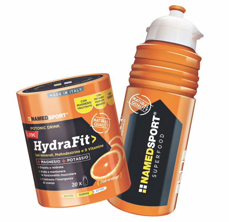Ispirato ai colori e alle iconografie del ciclismo del passato, è composto dalla t-shirt Campy con la classica ruota alata sul petto e dal Cappellino giallo corsa con i loghi neri accompagnati da una fascia iride, simbolo delle corse di un tempo, del ciclismo dei grandi campioni del passato. Infine il Block Notes Campagnolo, dedicato a tutti colori che non hanno mai spesso di affidarsi a carta e penna (o matita…) Perfetto per annotare le proprie imprese, pianificare la prossima stagione o fare il ritratto della compagna di avventure. NamedSport Hydrafit – 5,99 euro