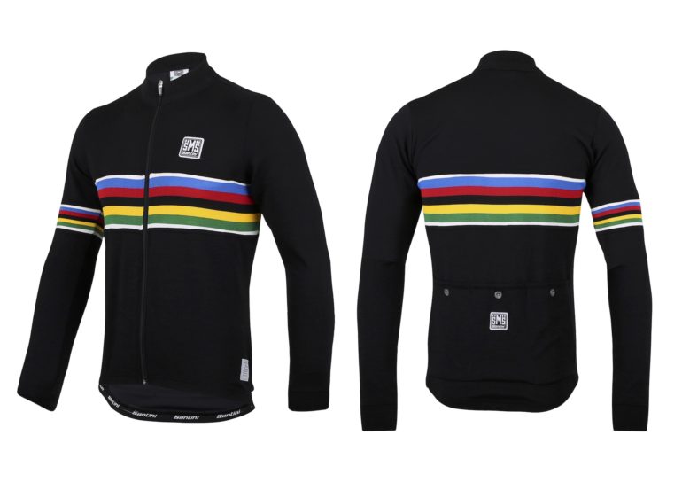 40 immagini e illustrazioni per celebrare la passione per il Ciclismo. Paul Smith, che oltre a essere uno degli stilisti più affermati è un grandissimo appassionato di bicicletta, ha deciso di rendere omaggio a questo suo amore raccogliendo in un libro i personaggi, le corse e i luoghi del Ciclismo che lo hanno ispirato. Dalla collezione di maglie, alla vasta biblioteca, alle brochure degli anni ’50 e ’60, alle collaborazioni con Pinarello e Mercian, questo libro è un viaggio per immagini che connette il suo amore per il design e quello per il Ciclismo. Santini UCI Rainbow jumper – 145,00 euro