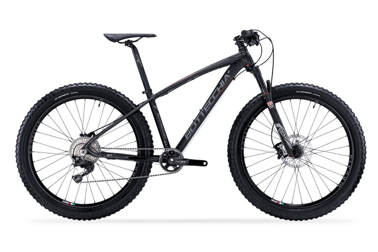 Il telaio in alluminio con passaggio cavi interno e forcella Rock Shox Reba RL 27,5+ (1.622 g) con 120 mm d’escursione caratterizzano la front italiana, montata con un gruppo Shimano XT (2x11v) con guarnitura 36/26 e cassetta pignoni 11/40. Ai celebri cerchi WTB Scraper i45, tra i primi al mondo specifici per lo standard 27,5 Plus, si accompagnano gli altrettanto famosi pneumatici WTB Trailblazer con sezione da 2,8 pollici. Freni a disco idraulici Formula CR1, made in Italy. Costa 2.790 euro.Bottecchia Stelvio 27,5+ Plus