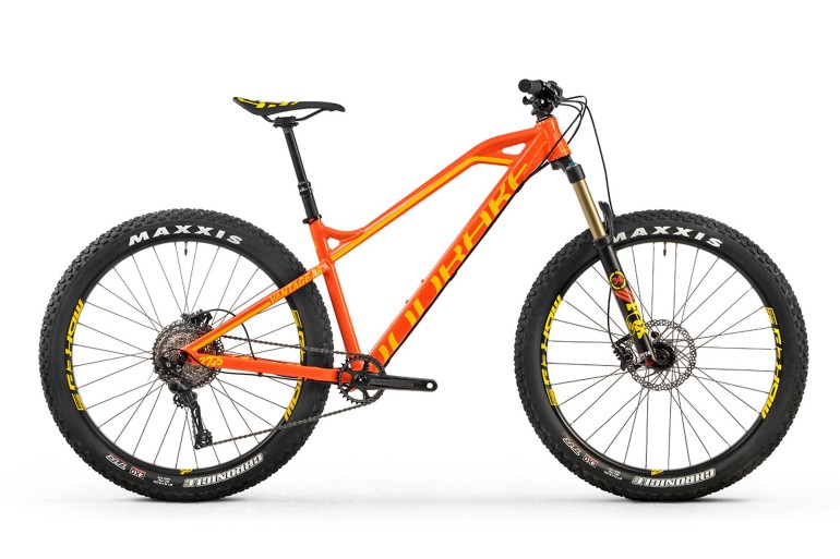 La prima 27,5 Plus “ufficiale”. Raffinato il telaio: al triangolo anteriore in fibra di carbonio abbina un carro posteriore in alluminio. La forcella è una Manitou Magnum con escursione di 120 mm, mentre l’ammortizzatore appartiene alla serie McLeod – sempre by Manitou – con travel di 95 mm. Montata con un gruppo misto Shimano XT/SLX, può contare su di una guarnitura 38/24 abbinata e una cassetta pignoni 11/36. Ruote WTB con cerchi della serie Scraper i45 e pneumatici Trailblazer caratterizzati, rispettivamente, dal canale di 45 mm e dalla sezione da 2,8 pollici. Freni idraulici Shimano M506 con dischi da 180 mm di diametro. Pesa 13,8 kg e costa 4.899 euro.Salsa Pony Rustler