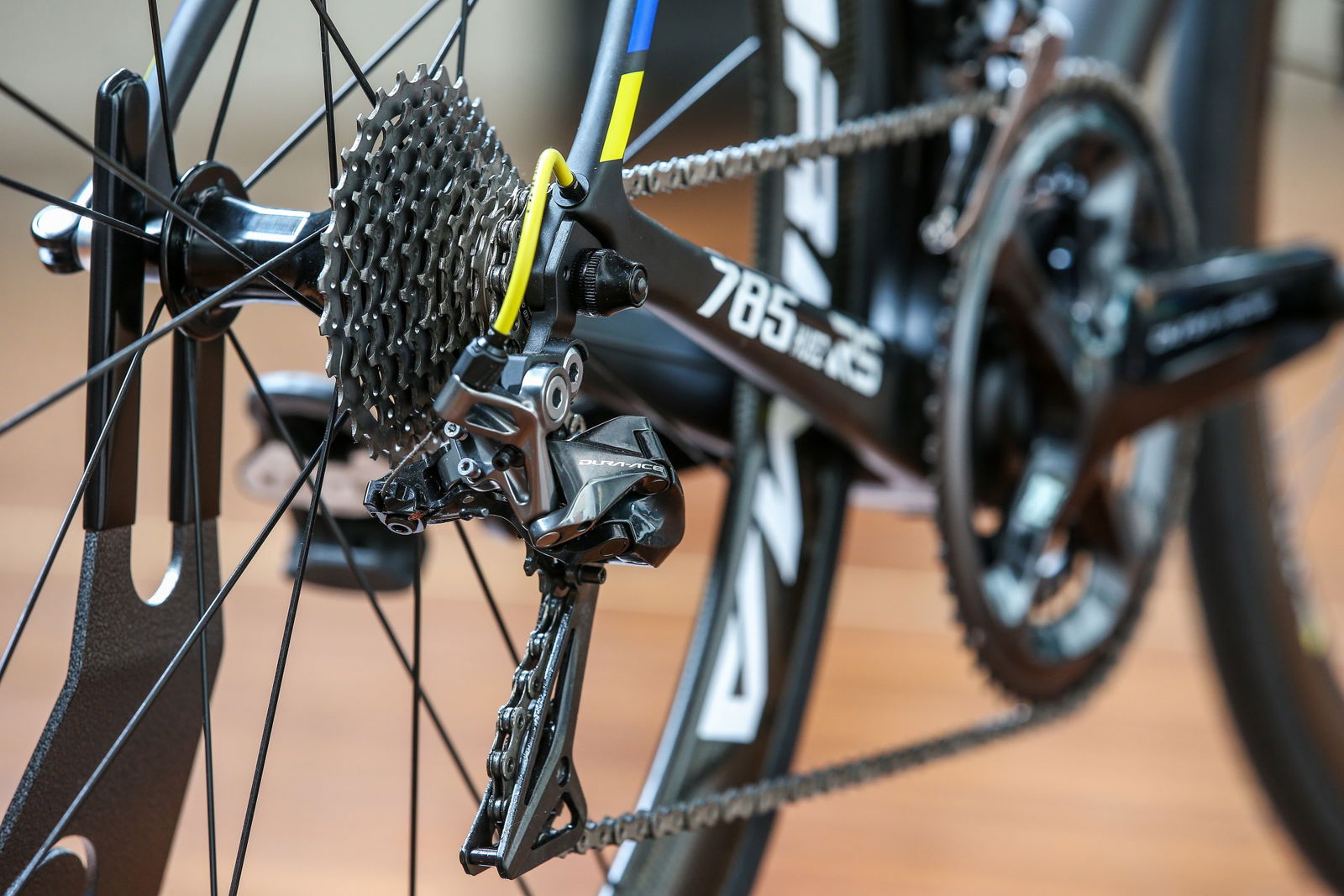 Il nuovo progetto Look 785 Huez RS è nato da uno studio sul telaio, sia in termini di materiali sia di forme dei tubi, per ottenere il massimo dal rapporto rigidezza/peso di ciascuno di essi. Efficienza e performance sono state le priorità degli ingegneri di Look, che non hanno però rinunciato a lavorare sulla leggerezza, scegliendo tubi di 0,6 mm di spessore.CINQUE FIBRE DI CARBONIOUna volta definiti lunghezze, dimensioni e spessore dei tubi, il passo successivo è stato scegliere le fibre più adatte al progetto, senza dimenticare che le prestazioni in salita erano il focus. Per costruire il telaio della Look 785 Huez RS sono state impiegate cinque differenti fibre di carbonio, scelte ciascuna per le sue peculiarità in relazione alla parte del telaio in cui utilizzarla. Per avere un’idea della complessità del progetto, basti pensare che la forcella è composta da 90 pezzi di carbonio, la scatola del movimento da 20 e per tutto il telaio ne sono stati assemblati ben 260, posizionati e orientati in modo preciso. In questo caso i trent’anni di esperienza di Look nella tecnologia del carbonio e nel suo utilizzo sono stati un bagaglio inestimabile.IMPRESSIONA SULLA BILANCIAInfine il peso della Look 785 Huez RS, che in versione Shimano Dura Ace con cerchi Corima Carbon S1 da 47 mm ed equipaggiata di pedali si difende alla grande con i suoi 7,3 kg.Il premio “peso piuma” – 5.910 g – va però alla variante con trasmissione Sram RED e ruote Corima Carbon 32 MCC S+ tubolari.Il prezzo della Look 785 Huez RS varia da 5.999 euro per la versione con ruote Mavic ai 6.999 euro montata Corima. Sono anche disponibili due versioni più abbordabili, entrambe montate Shimano – Ultegra Di2 e Ultegra – con ruote Mavic Ksyrium Black.Blocco le scarpette sui pedali Look Carbon della nuovissima 785 Huez RS, piacevolmente stupito del fatto che con la semplice regolazione della sella ho trovato rapidamente una posizione che mi convince e non affatica. In realtà la lunghezza dell’attacco manubrio (superiore di 20 mm rispetto a quella della mia Cervelo) mi aveva preoccupato, ma nell’arco di pochi chilometri la posizione leggermente distesa sul manubrio si è rivelata un vantaggio in una giornata in cui il vento, prima frontale e poi trasversale, non mi ha mai abbandonato.IL CARRO LAVORA PER IL COMFORTLa gamba gira libera e soprattutto realizzo, percorrendo il solito percorso d’allenamento, che la capacità di assorbimento del carro in particolare è superiore alle aspettative. Osservo il percorso dei foderi obliqui, che con una rapida curva si innestano nel tubo orizzontale, dando vita a un supporto che ha la capacità di filtrare praticamente tutto senza perdere in capacità di rilancio ogni volta che il cambio di rapporto e di ritmo permettono rilanci e accelerazioni. La Huez RS scivola leggera sulle rugosità di un asfalto che soprattutto nei primi chilometri è tutt’altro che levigato.RUOTE A PROFILO MEDIO-ALTOConfigurata con i cerchi Corima Carbon S1 con profilo da 47 mm equipaggiati con pneumatici Continental Ultra Sport 2 da 25” guadagna punti nella classifica estetica ma perde inevitabilmente qualcosa nell’efficienza della pedalata in salita, terreno di caccia per la quale la Look 785 Huez RS è stata pensata.Il profilo dei cerchi trova, invece, perfetta applicazione nei rilanci a velocità sostenuta quando si pedala nel transitorio da 35-40 km/h e si vogliono mantenere buone medie. La percezione più evidente è la spinta consistente del cerchio posteriore che porta con rapidità a riguadagnare la ruota di chi precede quando il trenino rilancia. In questo frangente l’effetto giroscopico delle ruote porta la Look a stabilizzarsi anche se si scatta in piedi sui pedali. La buona rigidità del telaio porta chi pedala ad avere dopo un breve rilancio la bici perfettamente allineata e neutra.EFFICACE ANCHE SUL VELOCEDato per scontato che sul suo terreno di caccia se la cavi egregiamente, abbiamo deciso di mettere alla frusta la Look in quelle situazioni che rappresentano il 70% della vita reale che condurrà fra le mani di un appassionato padrone, il quale per dedicarsi a epiche salite dovrà comunque sciropparsi anche tutto il resto.I 74 km del nostro test hanno alternato il classico “piattone” da affrontare in gruppo con la gamba che mulina veloce oltre i 46 orari, complice l’effetto scia, al più pertinente “mangia e bevi” collinare, dove in discesa è necessario avere tra le mani un manubrio che riceve informazioni precise dall’avantreno danno una chiara idea delle potenzialità del nuovo modello. Pur non essendo una bici Aero, alla Look 785 Huez RS non manca la capacità di mantenere medie velocistiche elevate. E i cerchi con profilo alto aiutano, almeno quanto la filosofia costruttiva che valorizza la capacità di salire con sforzo contenuto su pendenze superiori al 6% e soprattutto scendere a buona velocità raccordando curve in sequenza.In questo frangente ho apprezzato la rigidità della forcella, che garantisce una buona precisione direzionale, stabilità sul veloce ma anche una ridotta maneggevolezza alle basse velocità.Buono l’impianto frenante, ben modulabile ma rumoroso. Convince il cambio Shimano Dura Ace R9100 con guarnitura 52×36 e cassetta 11×28 preciso negli innesti dei rapporti e incredibilmente rapido nell’azione del deragliatore, pur non essendo elettronico.