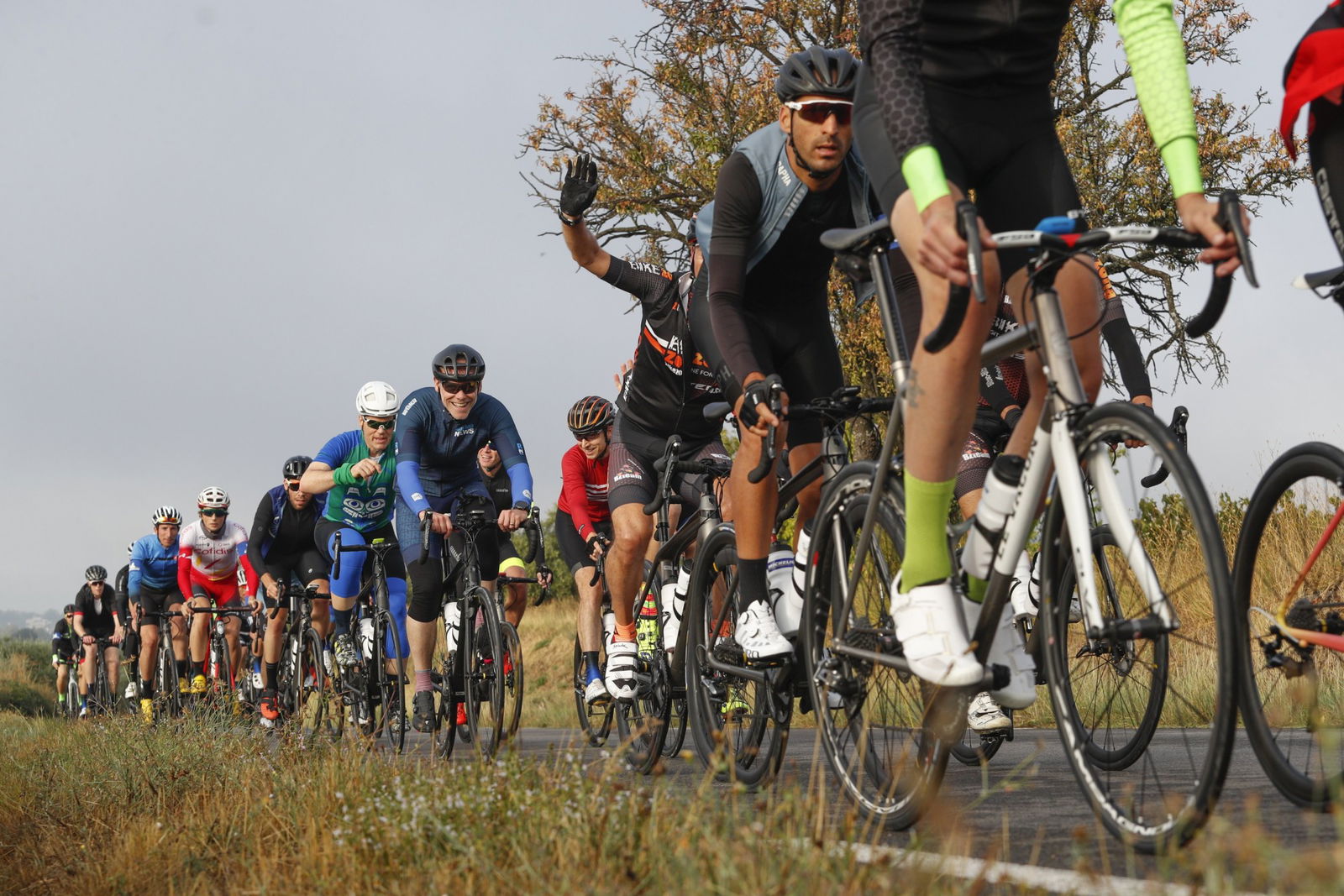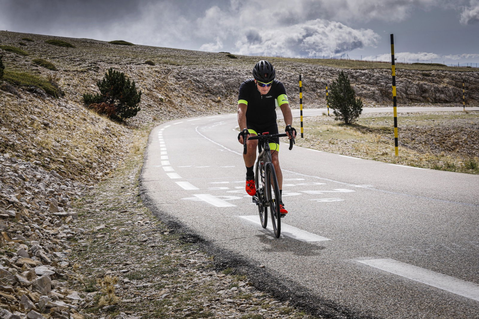 Chi ben comincia… Il meteo è abbastanza buono, anche se dalla pianura non si scorge la cima del Ventoux, coperta da un cappello di nuvole. Ma lì sopra, si sa, il vento ci mette poco a mescolare le carte. Bello l’avvicinamento. Ci si scaldano le gambe pedalando fra i vigneti e la lavanda, un classico di questa zona della Provenza e si apprezza il comfort delle nuove Michelin, soprattutto su quei tratti in cui l’asfalto sembra quasi quello italiano. Sono falsopiani che, man mano ci si avvicina al “Gigante”, si inclinano un po’ di più. Alle pendici del massiccio si entra nel bosco, che non si lascia più fino a quando cominceranno le bianche pietraie dell’ultima parte della salita.Sulla strada si incontra pochissima gente, è il grande vantaggio del pedalare nel mezzo della settimana, privilegio riservato di solito ai pensionati… Il tratto nel bosco è molto bello, vario e accompagnato dai profumi della natura. Anche se le pendenze non sono costanti, si riesce a prendere un buon ritmo e si conferma l’impressione di buona scorrevolezza delle Power Road, percepita già dai primi chilometri. I numeri del Mont Ventoux non sono terribili: pendenza media del 7,7%, anche se ci sono strappi più vicini al 20 che al 10, però la difficoltà sta nella lunghezza e nel vento, che quasi sempre accompagna la salita nella sua parte esposta.Con il passare dei chilometri e dei tornanti il gruppo si sfilaccia. Ad accompagnare i giornalisti, anche un giovane Pro della Cofidis (partner di Michelin nello sviluppo dei Power Competition e del Power Time Trial) che approfitta della situazione per aggiungere un po’ di salita ai suoi allenamenti. Quando si esce dal bosco, oltre alla luce e al panorama che si apre verso Sud, a salutare la compagnia è un vento forte e costante. Peccato che non riesca a pulire la cima, che rimane nascosta dalle nuvole.La fatica già nelle gambe cresce più di quanto si potesse mettere in conto e si abbassa anche la temperatura. Gli ultimi chilometri sodo davvero duri, tant’è che qualche compagno di salita viene caricato dalla scopa prima che le raffiche lo riportassero a valle. Peccato che la fatica non sia stata ripagata anche psicologicamente, con la vista che mille immagini hanno impresso nel nostro immaginario. L’antennone bianco e rosso è lì, a pochi metri, ma non lo si vede, tanto sono fitte le nuvole che si sono addensate sulla cima.Pochi minuti per riposarsi e poi si scende, evitando di ripercorrere l’ultimo pezzo in balia del vento. Ma il divertimento non ne risente: la discesa sembra senza fine. e non c’è modo migliore per mettere alla prova le Power Road, che trasmettono una grande sicurezza. Il riposo della sera è meritato e serve a mettere in ordine i ricordi per stamparli in modo indelebile nella memoria.