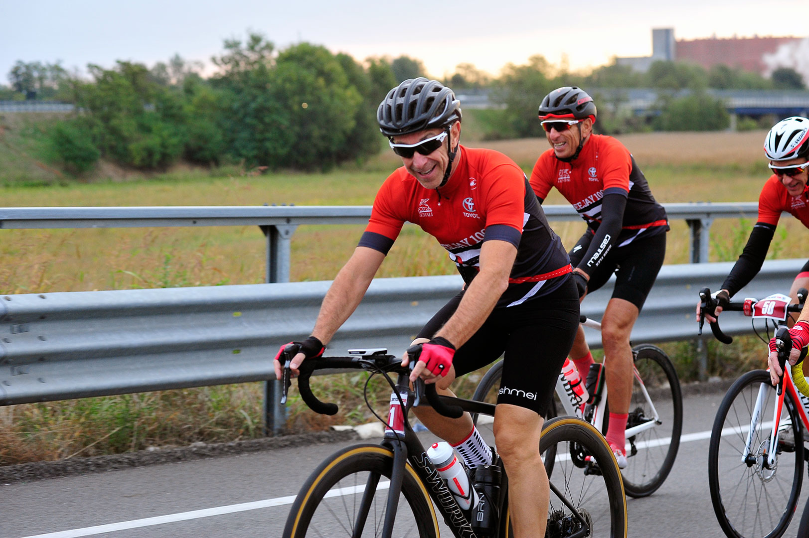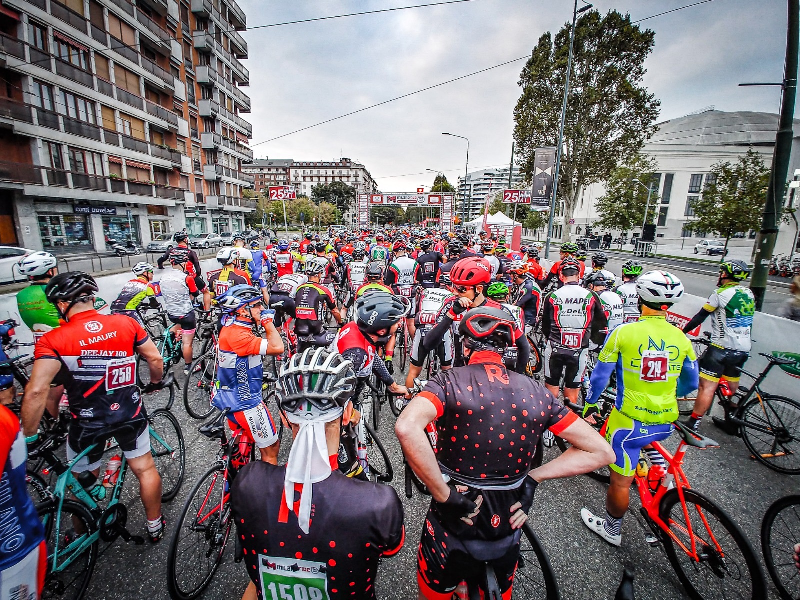 30 settembre 2018, è l’alba della Milano Ride Deejay 100. Il Team Red è in griglia, più agguerrito che mai. Oggi si punta in alto. E già non mi tornano i conti: cosa ci faccio in mezzo a oltre mille ciclisti che pedaleranno assatanati lungo un percorso a me poco congeniale? I cento chilometri sono piatti e velocissimi, il dislivello maggiore della giornata sarà quello per uscire dalla rampa del box, con l’automobile, e recarmi qui a Milano, quartiere Citylife.Vedo Linus in griglia, accerchiato dai suoi “spietati” e da Aldo Rock, voci che ascolto spesso alla radio. Sono giorni che ne parlano, sono giorni che medito di stargli davanti! Mi è già capitato di incontrarlo in bici, lungo le “mie” strade del triangolo lariano, e so che lo posso battere. Una volta scambiai due parole con lui sulla Onno (salita che da Oliveto Lario, frazione Onno, sale in Valbrona) e lo vidi piuttosto provato. Sarà il mio obiettivo di giornata.I miei spietati, invece, sono i soliti Edoardo e Fabio, con l’aggiunta del Bencio, il fortissimo tridente di RED. Poi, oltre a chi scrive, ci sono Igor (maestro di selfie) e Giovanni, quest’ultimo reduce insieme a me e al Bencio dal clamoroso podio alla 12 ore di Monza. Abbiamo ancora le gambe in palla dopo quella gara, chissà mai che oggi possano girare ancora meglio. Vedremo.