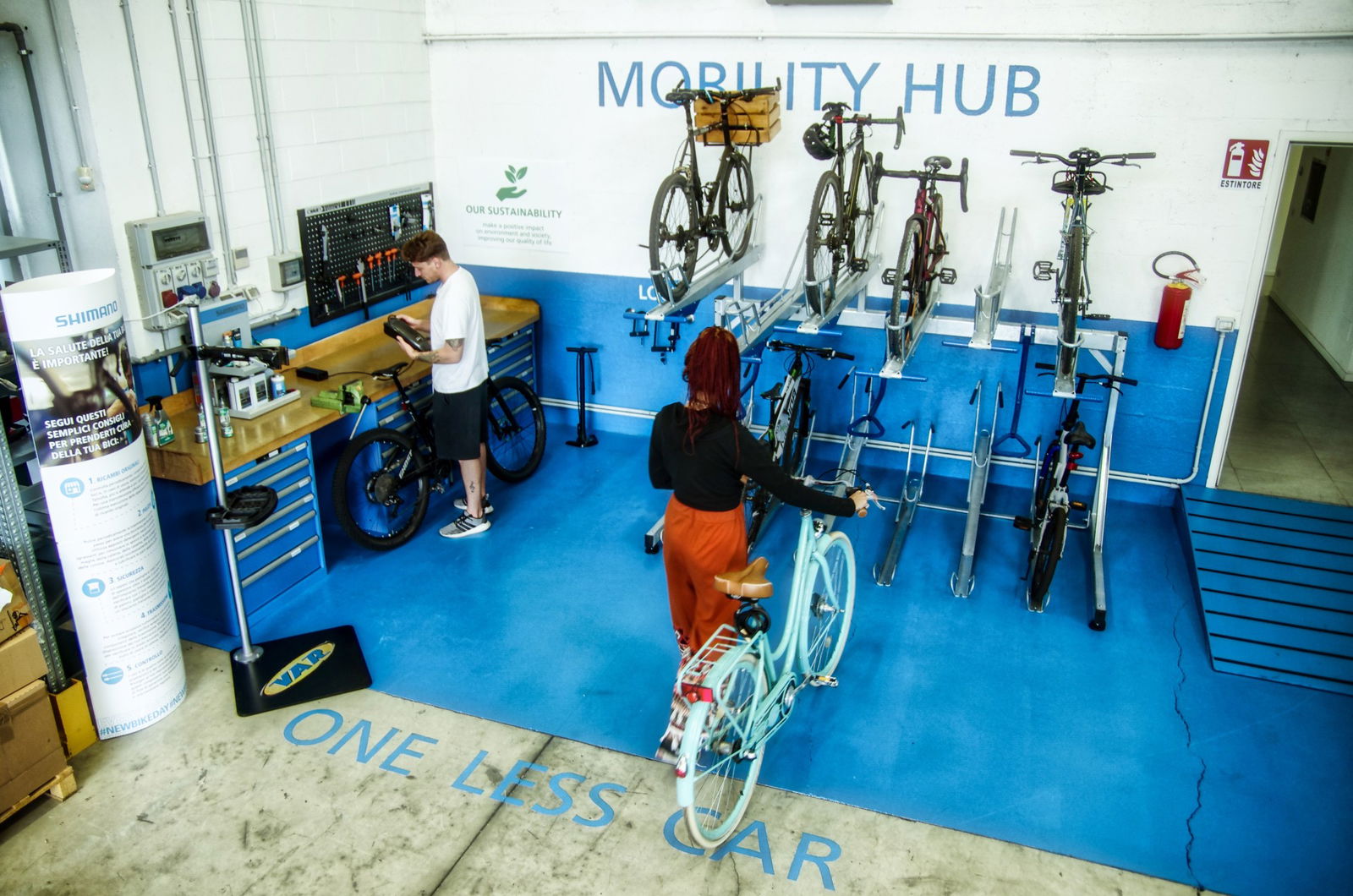 Si tratta di uno spazio dedicato al concetto di bike to work a sostegno delle scelte del dipendente, collaboratore e partner che decide di spostarsi in ufficio in bicicletta, creando un impatto positivo sulla società in linea con la filosofia dell’azienda. Filosofia che esemplifica la missione aziendale di Shimano: “Closer to People, Closer to Nature – Promuovere la salute e la felicità attraverso il godimento della natura e del mondo che ci circonda”. Il mobility hub rappresenta uno spazio di sintesi tra la responsabilità aziendale rispetto al tema della sostenibilità e l’atteggiamento positivo di chi sceglie la bicicletta per dare risposta alle proprie esigenze di mobilità.