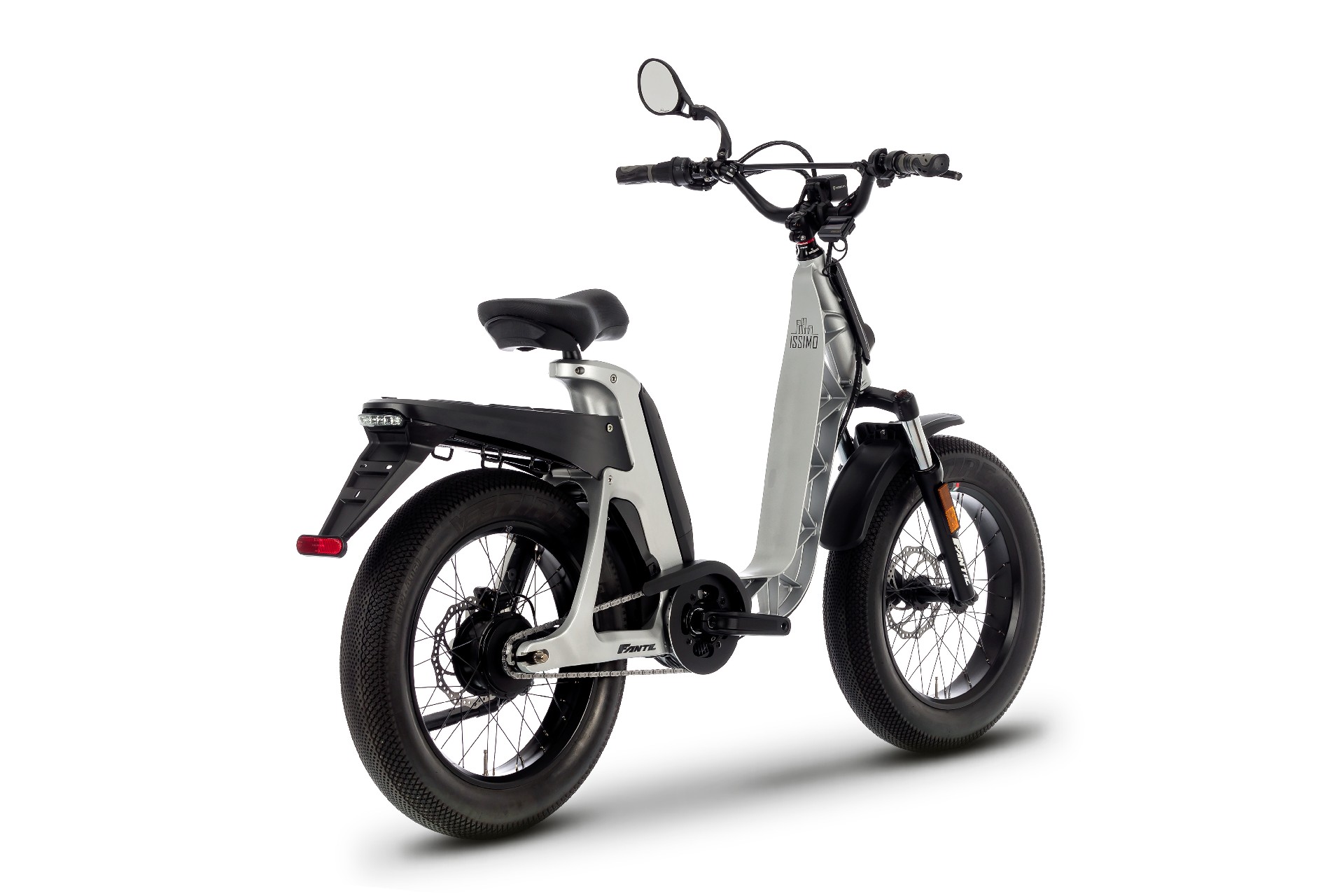 Il nuovo ISSIMO 45, sinonimo di sicurezza e stabilità su qualsiasi terreno grazie alle ruote con pneumatici fat 20×4” e al baricentro basso, è la versione s-Pedelec di ISSIMO. Monta motore Bafang M600 da 500 W con coppia max di 120 Nm e batteria da 600 Wh (semi integrata e amovibile). In quanto versione s-Pedelec, rispetta tutti gli obblighi di legge previsti per questo genere di veicoli, e dispone quindi di luci omologate, porta targa e specchietto retrovisore. Di serie, è dotata anche di vano porta oggetti. Il cambio è di tipo continuo, ENVIOLO Heavy Duty, integrato al mozzo della ruota posteriore. ISSIMO 45 è una bici elettrica progettata per il commuting e rappresenta una nuova opportunità di movimento in città, in piena libertà e rispetto della mobilità sostenibile. Il suo design, lo ricordiamo, è personalizzabile con accessori e cover colorate.