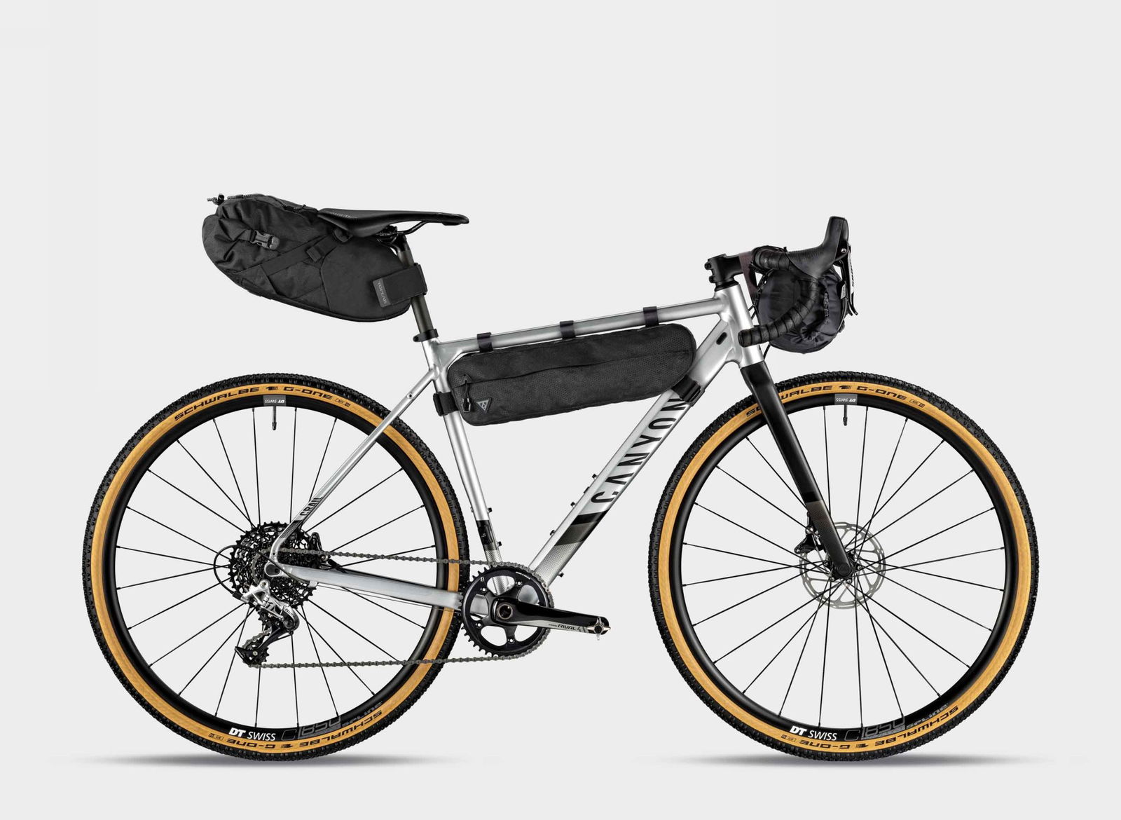 SENZA COMPROMESSIMateriale e geometrie accomunano il telaio dei tre modelli, due dei quali declinati anche in versione Woman: alluminio Canyon Grail per triangolo e carro con forcella One One Four SLX Disc in fibra di carbonio (cannotto lineare da 1-1/4″, perno passante da 12 mm e attacco pinza flat mount). Hanno in comune anche le ruote DT Swiss C 1850 Spline DB (una garanzia di affidabilità e robustezza), le gomme Schwalbe G-One Bite da 40 mm tubeless ready, il cockpit con attacco e manubrio tradizionali (marchiati Canyon), il reggisella e la sella Selle Italia X3 Canyon Edition.SINGOLA O DOPPIA, DE GUSTIBUSA differenziare le tre varianti è il gruppo, SRAM Rival e Shimano 105 per 7.0 SL e 7.0, Shimano Tiagra per 6.0. Nel caso della 7.0 SL, montata SRAM, la trasmissione è ovviamente 1×11 (corona da 42 e cassetta 11-42) e i dischi lavorano con rotori da 160 mm. La 7.0, invece, adotta un classico 2×11 (corone 50/34 e cassetta 11-34), che diventa 2×10 sulla 6.0, anch’essa con cassetta 11-34. I pesi variano da 9,3 kg a 9.8 kg.