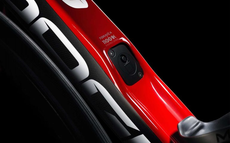 Sarà l’ottavo modello di bicicletta messo a disposizione dei campioni del Team Sky nei sette anni della proficua collaborazione con Pinarello e segnerà uno dei momenti evolutivi più marcati nella storia Dogma. Punti di contatto con il passato F8 sono il materiale dei tubi e il loro profilo: fibra di carbonio T1100-1K by Torayca e sezione Flatback, con posteriore tronco. In realtà il tubo obliquo è completamente nuovo ed è ereditato dalla Bolide TT, arma da cronometro, caratterizzato da un disegno che incrementa la rigidezza laterale, aiuta a eliminare le turbolenze generate dalla borraccia e consente inoltre di alloggiare il controller dei tubi elettronici E-Link.