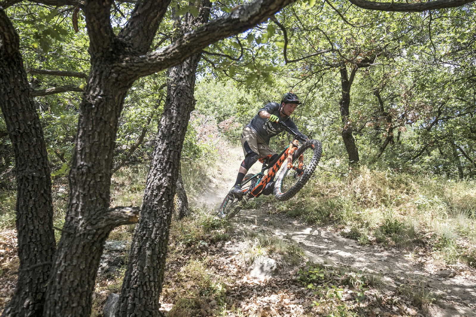 La bici totale è come la quadratura del cerchio: impossibile da ottenere. Però ci si può avvicinare molto e la nuova Genius ne è la dimostrazione pedalabile…Icona di versatilità sin dalla sua apparizione, nel 2004, in questo quinto stadio evolutivo rappresenta davvero lo stato dell’arte nonché il concetto moderno di bici All Mountain/Trail, sia a livello di soluzioni tecniche, sia di prestazioni.”Prima di scendere bisogna salire” è ora più che mai il mantra che ha guidato Scott in questo progetto. Ripidi strappi dal fondo infido, single track fluidi e veloci, discese da paura… Sono questi ambiti estremi a rappresentare i confini entro i quali in cui la nuova Genius è stata progettata per muoversi con disinvoltura.I NUMERI DA CONOSCERELe caratteristiche peculiari del progetto Genius possono essere riassunte in tre dati: 2.249 grammi (il peso del kit telaio+mono), 29″+27,5″ (le due misure di ruote che possono essere montate sullo stesso telaio), 150/110/0 mm (sono le tre opzioni di escursione permesse dal sistema di gestione della sospensione TwinLoc).Partendo dal telaio, è stata l’esperienza acquisita con la Spark e dunque con nuove tecniche di posizionamento dei fogli di fibra di carbonio a contribuire al raggiungimento di questo eccellente risultato in termini non solo di leggerezza complessiva ma soprattutto di rapporto peso/rigidità.Capitolo ruote. La nuova Genius dà la possibilità di passare da una coppia di 29″ a una di 27,5″ senza alcuna modifica, se non il solo rovesciamento di una delle placchette posizionata in corrispondenza degli attacchi del mono, per far sì che l’altezza del movimento centrale non subisca che una impercettibile variazione. Nel primo caso è possibile montare gomme di sezione fra 2,4″ e 2,6″, mentre nel secondo si può spaziare fra 2,5″ e 2,8″ quindi anche in configurazione non Plus.Il TwinLoc Suspension System non è invece una novità, ma mai come in questo caso si rivela un moltiplicatore di versatilità perché al crescere dell’escursione cresce l’esigenza di neutralizzarne il pedal feedback. La regolazione offerta del TwinLoc non agisce infatti solo sul freno in compressione ma anche sulla curva, riducendo l’effettiva escursione e modificando il Sag della sospensione.GEOMETRIA E SOSPENSIONE SONO NUOVEDato per scontato che una Trail sia performante in discesa, la dote che la rende completa ed eclettica è l’efficacia quando si tratta di pedalare, soprattutto in salita. Principali responsabili di questa capacità sono la geometria e la sospensione. La nuova Genius differisce dalla precedente sotto entrambi gli aspetti.In quanto a geometria, in Scott hanno lavorato per migliorare il bilanciamento: più corta di carro (436 mm), più aperta di sterzo (65,6°) e più chiusa di sella (75,3°). Queste misure danno origine a una distribuzione dei pesi che compensa l’avantreno più lungo e il reach maggiore, in modo da garantire stabilità, trazione e maneggevolezza.Stravolta anche la sospensione, che riprende lo schema adottato dalla Spark, con montaggio Trunnion. Questa soluzione ha portato a importanti modifiche anche a livello di costruzione del telaio, caratterizzato ora da una rigidità maggiore nella zona della scatola del movimento dove si concentrano le forze generate dal mono, che ha permesso di scaricare il top tube e distribuire rigidità e leggerezza in modo più mirato.MODELLI E ALLESTIMENTICome al solito, la scelta contempla tre differenti combinazioni di materiali per telaio e carro: full carbon (700 Ultimate e 700/900 Tuned), carbonio/alluminio (710, 720/920) e alluminio (730/930, 740/940, 750).Ovviamente, chi avesse le idee chiare sulla taglia di ruote più adatta ai propri gusti, può contare su allestimenti già definiti: i modelli in configurazione 27,5″ (serie 7) sono Plus con pneumatici da 2,8″ mentre quelli con ruote da 29″ (serie 9) sono equipaggiati con gomme da 2,6″.