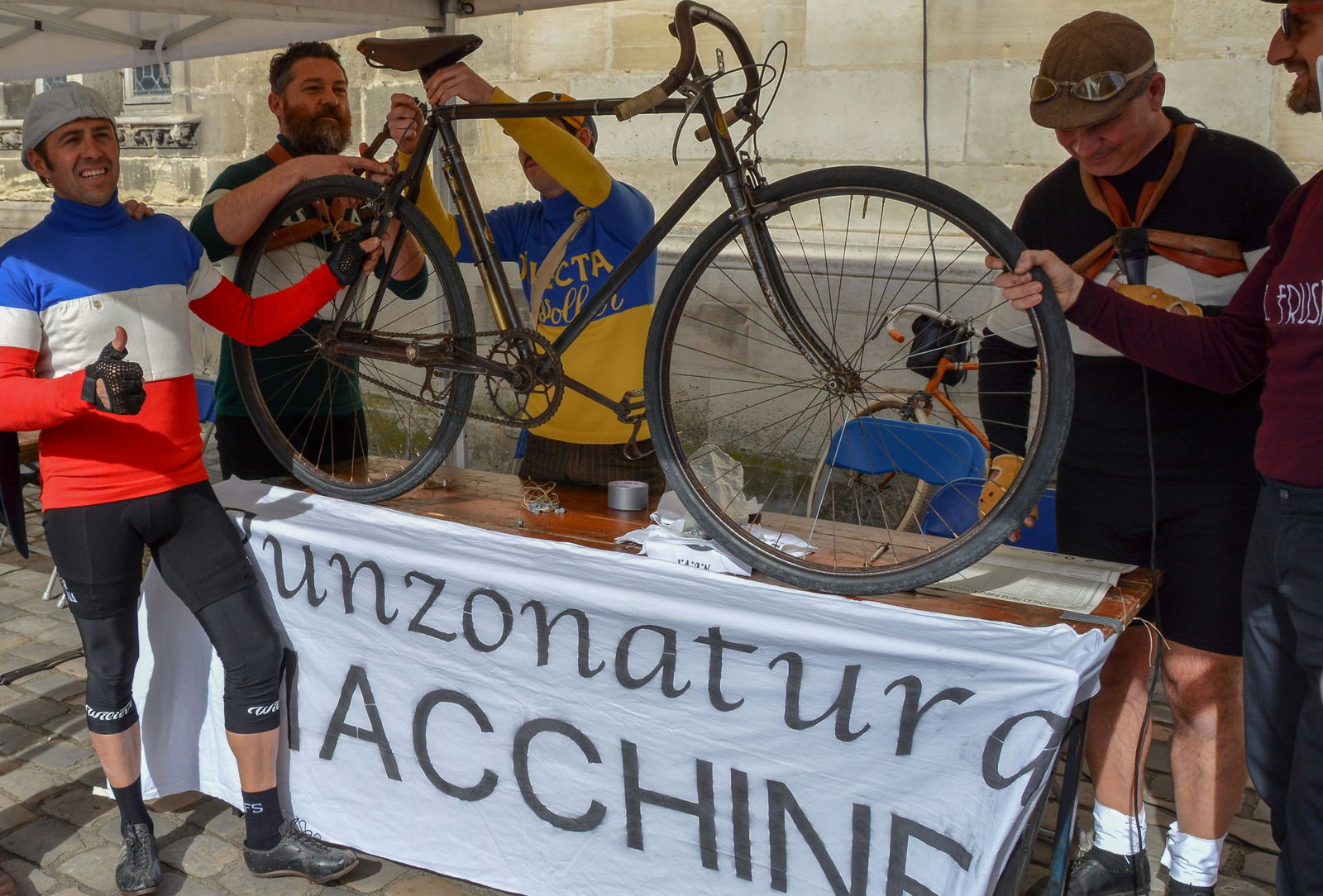 Se il mirino punta verso Nord, la scelta è quasi obbligata: Fiandre o Roubaix. Resta il fatto che scegliere è un bel dilemma e i sostenitori di entrambe le fazioni hanno tutti ottime ragioni… Così, spesso va a finire che nell’elenco delle cose a pedali da fare almeno una volta nella vita, si segnano entrambe!DA MAGREGLIO CON ARDORESe però si abita al Ghisallo, un luogo anch’esso intimamente immerso nella mitologia del ciclismo, decidere di pedalare alla Roubaix è quasi scontato perché mito chiama mito. Il problema è che, se oltre ad abitare a cento metri dalla chiesetta della Madonna del Ghisallo fai anche parte della NUVI¹, le avventure raddoppiano e diventano due, una dentro l’altra. Perché? Perché pavé, chilometri e meteo a parte, la Paris-Roubaix si affronta pedalando su macchine Anni 20…ARMA DA PAVÉSì, “macchine”, perché così si chiamano le biciclette vecchie per davvero. E quella di Natale da Magreglio è una Roler’s del 1924: una bici francese artigianale con telaio ispirato a quello delle Labor, anch’esse transalpine. Negli Anni ‘20 queste ultime erano celebri per la grande resistenza torsionale dovuta al particolare disegno “a ponte” del tubo orizzontale, una caratteristica che ne faceva l’arma perfetta per le corse sul pavé (infatti alla Parigi-Roubaix del 1920 la vittoria sorrise a Paul Deman, mentre due anni dopo toccò ad Albert DeJonghe). La Roler’s di Natale è tutta originale a eccezione dei cerchi – ovviamente sono quelli in legno fabbricati dal Cermenati di Guello (migrato a Magreglio nel ’52), gli storici cerchi Ghisallo – e delle gomme, da 28”, lasciate invecchiare al sole perché i dettagli sono importanti. Molto… Difatti, quando dagli organizzatori del Challenge è giunta la ferale conferma dell’obbligatorietà di indossare un casco moderno, il panico di come poterlo abbinare all’abbigliamento – anch’esso Anni 20 – si è impadronito dei pensieri degli eroi più del Pavé d’Aremberg, fino a che qualcuno ha proposto di coprirlo con cappelli di lana.La Roler’s pesa 16 chili, monta un 46×18 e i pattini dei freni sono ricavati da due tappi di Champagne – la soluzione migliore per frenare sui Ghisallo in legno, grazie al maggiore attrito regalato dalla colla contenuta nell’impasto del sughero.UN PROGRAMMA QUASI PERFETTOL’avventura dei velocipedisti avrebbe potuto finire prima di cominciare, il giovedì ante-Roubaix, in una galleria di Basilea, dove il furgone che trasportava le biciclette di Natale e dei suoi 38 compagni di pedale (fra cui due ragazze e un certo Gibo Simoni dalla gamba veloce) è stato tamponato da un distratto automobilista elvetico, ma per fortuna la botta è stata molto superiore ai danni. Bene, secondo ostacolo superato (il primo era il casco…)Prua verso Nord, destinazione Compiegne, Francia. Il programma era gustoso: venerdì sgambata nella campagna intorno al paese; al ritorno, il sacro rito della punzonatura insieme agli altri seimila appassionati che avrebbero preso parte il giorno seguente alla Parigi-Roubaix Challenge. Sabato gara, con dieci ardimentosi in partenza alle 3:00 di mattina sul percorso da 260 km (quello su cui avrebbero corso i Pro la domenica) e tutti gli altri in sella alle 8:30, a Busigny, per unirsi agli impavidi e condividere il medesimo tracciato fino al velodromo di Roubaix.Giunti a destinazione la gratitudine fino ad allora riservata a chi era riuscito a trovare alloggio proprio in paese, cosa ritenuta impossibile data la marea di ciclisti e spettatori, si è trasformata in altro. Il motivo di tanta disponibilità di camere era il livello della pensione, una stella e mezza per incoraggiamento… Ma l’avventura e lo spirito di adattamento sono i fondamenti del manifesto della NUVI, dunque poche storie e bagagli in camera.HAI VOLUTO LA BICI? ADESSO PEDALA!Il giorno di ambientamento fila via liscio. Si fanno le ultime regolazioni, si assaggia qualche tratto di pavé, si fa un po’ di cinema per le vie della città e si punzonano le macchine. La sera a cena si cerca un bel piatto di pasta sul menu, ma il cuoco dell’albergo ha deciso che quella sarebbe stata la serata cous-cous… Altro attacco di panico. “Tranquilli, troveremo di sicuro un ristorantino che sappia soddisfare le esigenze dei velocipedisti”. Niente da fare, piuttosto che ingoiare le paste viste nei piatti degli avventori di qualche locale nei dintorni, la compagnia torna mesta alla base e fa i complimenti al cuoco, nel pieno spirito di adattamento e temerarietà che li anima.Tutti a letto presto, che per qualcuno la sveglia suonerà da lì a poco. Alle 3:00 chi sì è iscritto alla 260 km è già sotto lo striscione della partenza, con le luci accese e il maglione di lana indurito dal freddo. A scortare i dieci nottambuli fino a Busigny, dove avrebbe ceduto il volante dal furgone di appoggio per saltare il sella alla sua Roler’s e cominciare la sua Roubaix, c’era Natale da Magreglio.Come da programma, alle 8:30 tutti e 38 i velocipedisti hanno le ruote sull’asfalto. Le sezioni di pavé cominciano subito dopo Busigny: ce ne sono 29, per un totale di 54 chilometri. Il segreto è affrontarle in testa e a centro strada (ai bordi il pavé è ancora più sconnesso e taglia come una lama), gomiti larghi per non farsi passare ed evitare così di doversi districare fra le bici e le gambe di chi è scivolato a terra, con il rischio di fare la stessa fine e, peggio ancora, di rompere la bici.La strada prosegue in un continuo saliscendi e, se in salita le macchine dei velocipedisti segnano il passo rispetto alle pronipoti, pagando peso e rapporti, in discesa si rifanno con gli interessi, anche perché i freni è meglio non usarli troppo.I FRANCESI NON SI INCAZZANO…Che organizzazione. Si vede che questi luoghi trasudano grasso di catena e i loro abitanti degnano della medesima ammirazione tanto i cicloturisti dalle gambe pelose quanto i pro con le guardie del corpo. Come suonano lontan