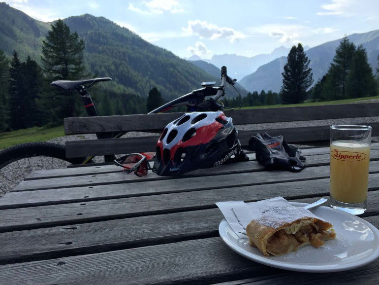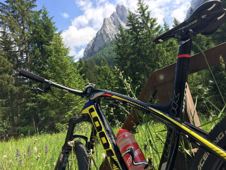 Mi piace la Look, scopro una 27,5″ che scorre davvero moltissimo, veloce su asfalto e sui terreni compatti, e in questo caso quasi mi sorprendo a constatare che non c’è molta differenza con una 29″, segno che nelle zone “sensibili”, dove c’è tagliare fino all’ultimo μ di attrito i francesi hanno lavorato molto bene… o si sono affidati a partner di eccellenza. La salita s’inerpica: pur con un reggisella tagliato un po’ alto per me riesco a spingere bene, la Look è rigida, ho la percezione che ogni pedalata non sprechi nemmeno un Watt in torsioni o flessioni inutili, tanto che mi scopro a pedalare sciolto anche quando la pendenza vola oltre il 18%, pur con una corona da 32 denti che non è certo la più adatta alle mie attuali potenzialità.Da amatore quale sono resto sempre perplesso sulla corona singola per un utilizzo vario, o se vogliamo “turistico” della MTB: secondo me è meglio avere due opzioni anche davanti, perché si finisce per essere sempre o troppo corti o troppo lunghi. In questo caso me ne accorgerò in discesa, una volta mollata la baita a 2.000 metri dove faccio tappa per lo strudel di rito, quando nel falsopiano finisco in fuorigiri. La scelta della corona anteriore è fondamentale anche nel caso dobbiate gareggiare.