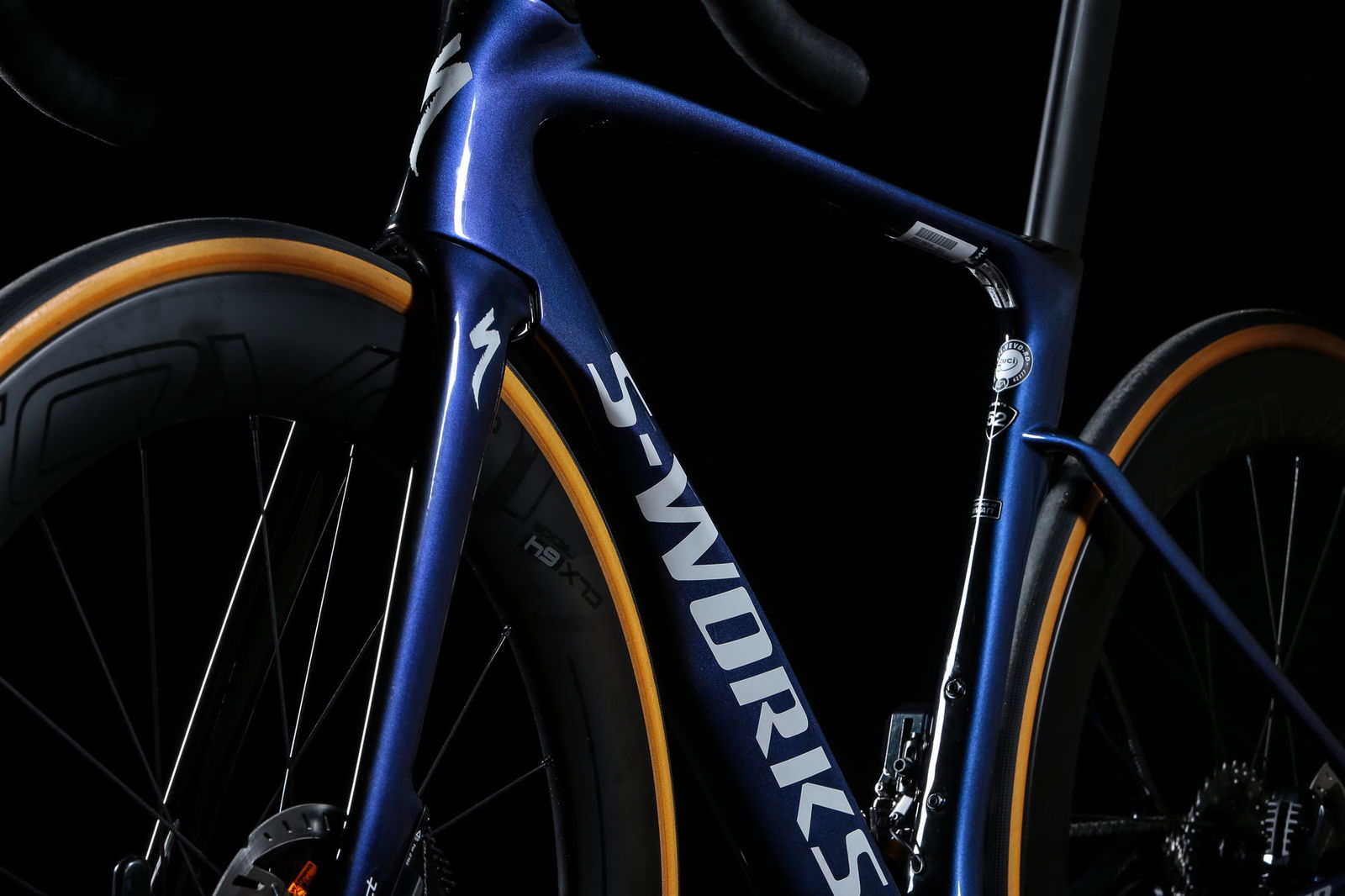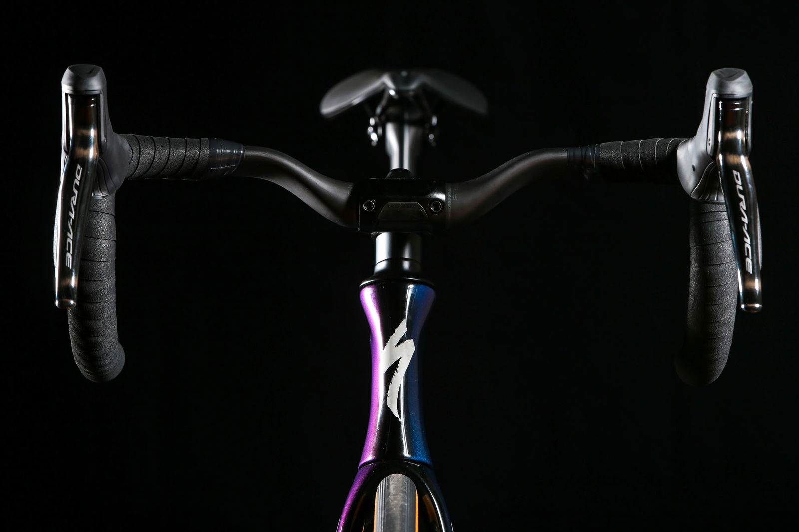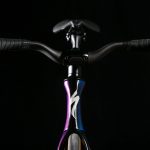 Ed è il sogno proibito di molti ciclisti. Per la tecnologia. Per il design. E, come vedremo, per le prestazioni. Costa 10.490 euro, cifra molto impegnativa ma in linea con la migliore concorrenza. La combinazione di colore proposta per la bici completa è unica, frutto dell’accostamento tra nero e viola cangiante, con scritte bianche. Affascinante ammirare i cambiamenti di colore a seconda della luce, una caratteristica che catalizza l’attenzione di chiunque veda questa bici. Per chi volesse partire dal solo telaio (con reggisella) c’è la possibilità di acquistarlo in due colorazioni: il classico nero satinato con scritte bianche (3.990 euro), oppure l’eclatante Sagan Superstar (4.190 euro), tributo al tre volte campione del mondo dedicato a chi abbia faccia e gambe adatte a sfoggiare una bici così vistosa e a suo modo unica. La cura volta a ridurre il coefficiente di penetrazione dell’aria (Cx) si evince dalla complessità delle superfici, disegnate in modo da garantire allo stesso tempo aerodinamicità e prestazioni dinamiche. Anche la forcella non nasconde l’attenzione a design e Cx.