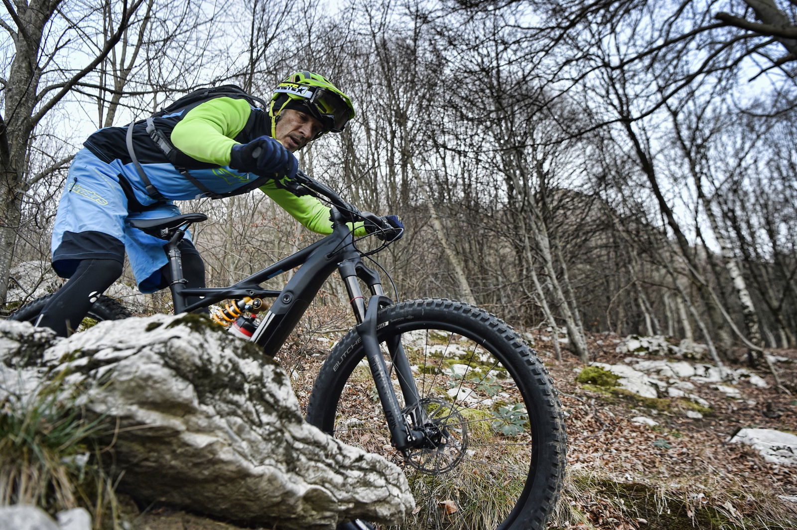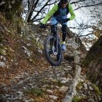 GEOMETRIA E PRESTAZIONILe quote della Turbo Kenevo parlano un linguaggio piuttosto chiaro e lasciano intuire quello che è il suo carattere: un carro supercompatto da 443 mm, con interasse di 1.233 mm promette reattività e stabilità, sterzo a 65° e sella a 74,6° con altezza movimento di 350 mm, reach e stack a 455 e 619 mm preannunciano maneggevolezza, trazione e controllo. In effetti, queste sono proprio le caratteristiche che ho riscontrato sia sulle pietraie e fra i sassi dei trail che scendono dai Corni di Canzo, sia fra le radici del ripido sottobosco del Monte Megna, sul lato opposto della Valle, lungo una via crucis di nome e di fatto…L’ottimale bilanciamento generale è enfatizzato dal lavoro egregio delle sospensioni, in particolare il mono