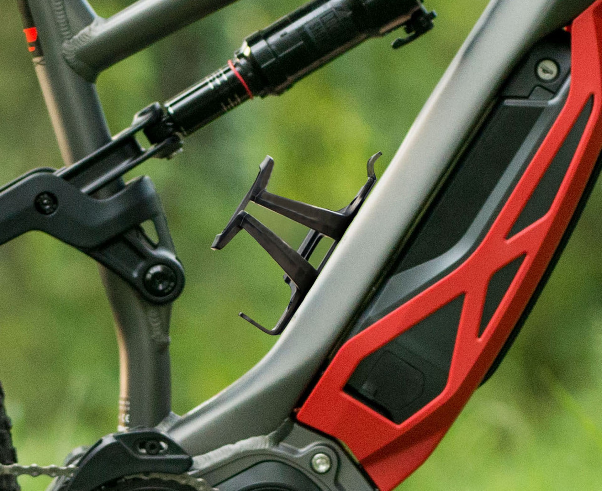 Per il telaio è stato scelto l’alluminio, in lega 6061 T4 e T6, così da garantire ciò che si cercava in termini di affidabilità, prestazioni e costi. Le geometrie sono caratterizzate da un angolo sterzo di 66°, sella di 74,5°, stack e reach che variano da 596/405 mm (S) a 606/426 mm (M), 624/450 mm (L) e 642/479 mm (XL). La parte centrale del telaio, la cosiddetta motor bracket connection, in cui si fondono tubo obliquo, verticale, snodo carro e supporto motore, è stata conformata per massimizzare la rigidità e favorire la neutralità di comportamento; sul tubo obliquo è ricavato lo spazio necessario per alloggiare una borraccia da 500 ml, soluzione ormai permessa dalla maggior parte dei telai, che consente di fare a meno della sacca idrica.