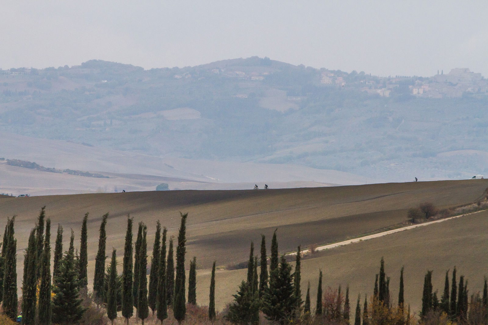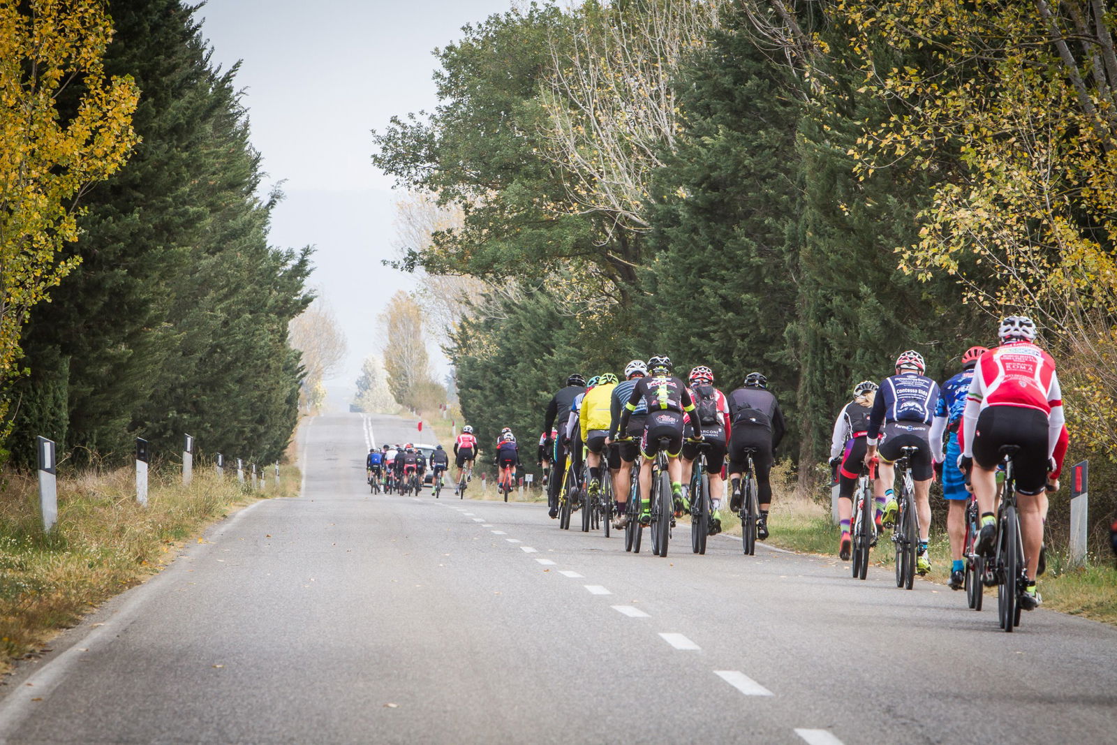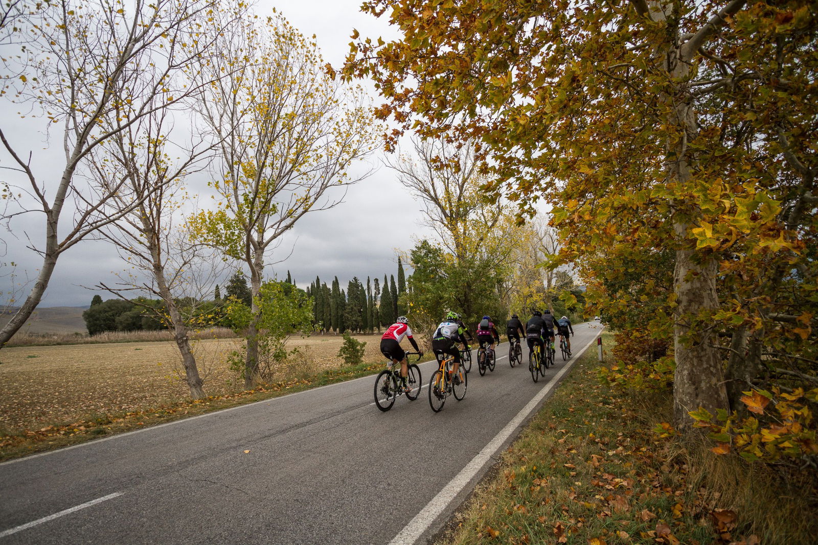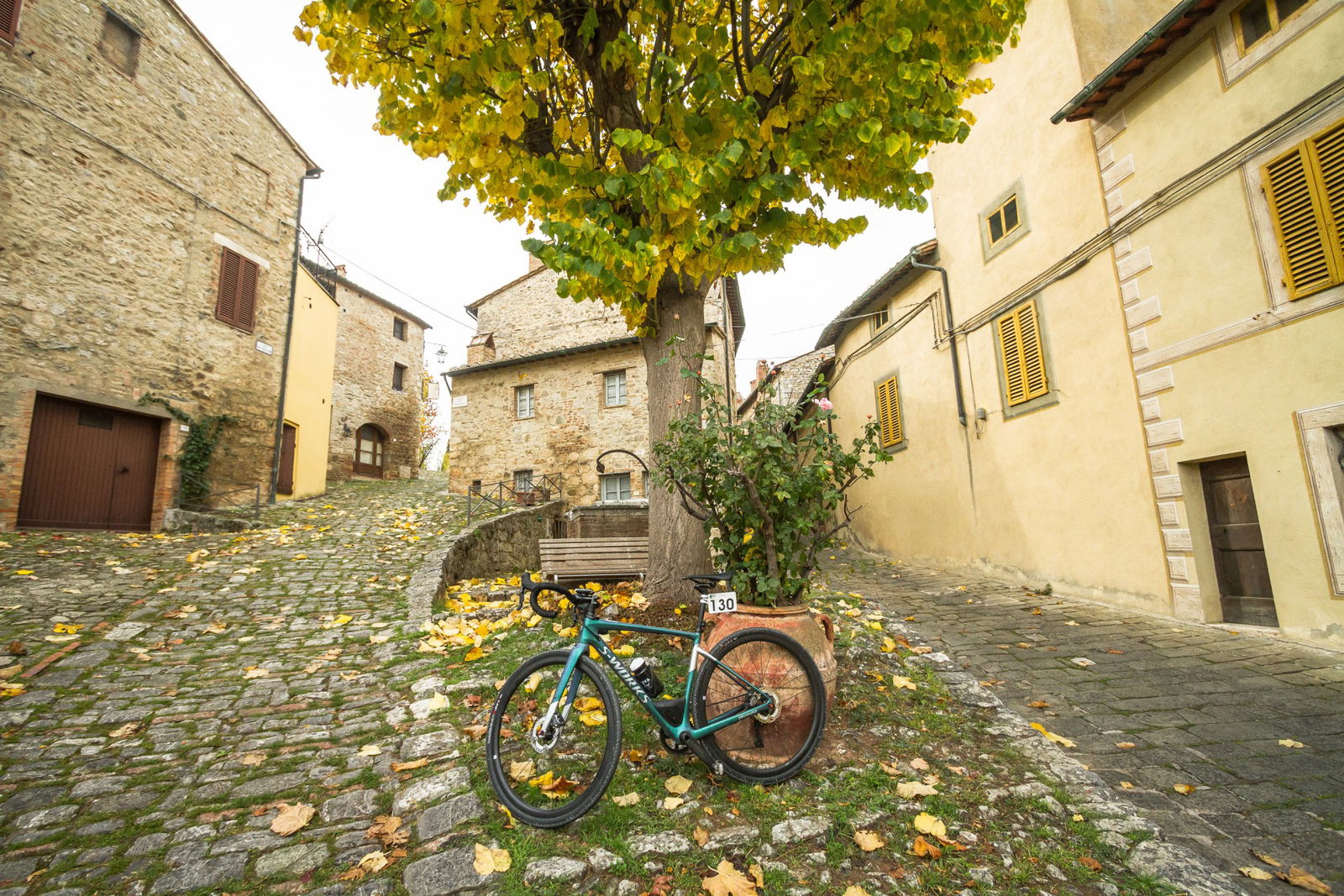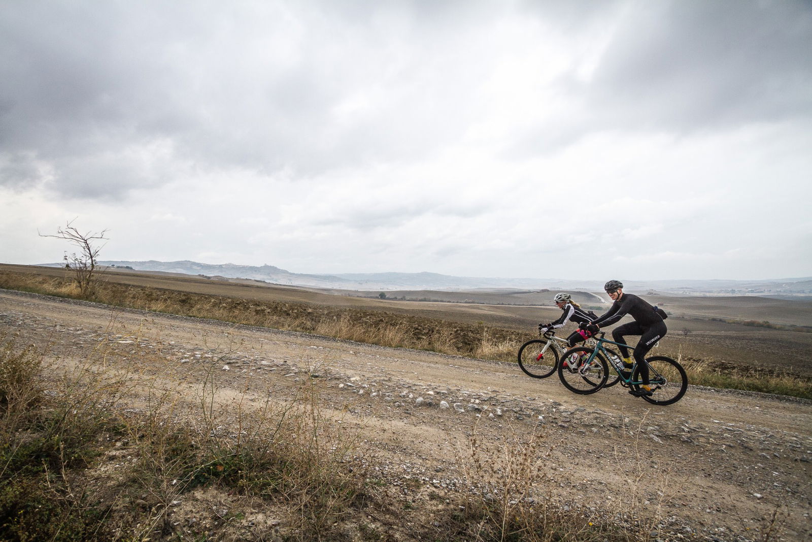 Bagno Vignoni, Val d’Orcia, atto conclusivo della Gravel Road Series: 80 km, metà dei quali fuoristrada, per un dislivello di 1.000 metri. Il cielo pesante sotto il quale ci siamo svegliati la mattina della gara era un evidente segnale che la giornata sarebbe stata di quelle quasi epiche, da ricordare con orgoglio e da raccontare tirandosela un po’ con gli amici. Tutta colpa di Rapha e dei suoi video intrisi di sudore, fatica, polvere e pioggia, che ti fanno credere che il vero ciclista soffra come un dannato…RED ALLA PARTENZA: RIVINCITA E SUPERTESTAlla partenza il numero degli atleti triplicava quello degli abitanti dello stupendo borgo medievale (che ne fa suppergiù 30…). Per noi la puntata finale del circuito aveva una doppia valenza: prenderci una rivincita sulla tappa di Alba, miseramente abbandonata dopo soli 40 km a causa del numero di forature maggiore di quello delle camere di scorta e, motivo indubbiamente più interessante, provare due delle novità più attese dal popolo Gravel. La Ritchey Outback e la Specialized S-Works Diverge.Rispetto alle altre prove del circuito, compreso quelle dello scorso anno, il percorso di Bagno Vignoni presentava una percentuale molto maggiore di sezioni fuori strada e un’altimetria disegnata da un susseguirsi di saliscendi, innervositi da qualche strappo davvero duro (come quello su asfalto e acciottolato che portava al primo ristoro sotto il torrione di Rocca d’Orcia). In Toscana funziona così. Colline morbide e una gran quantità di strade bianche che sono utilizzate, e dunque mantenute, come normali vie di collegamento con tanto di segnaletica e fondo uniforme, a eccezione di qualche breve intermezzo tipo toule ondulée.LA MALEDIZIONE DEL CICLISTANon credo sia contemplata fra le varie Leggi di Murphy, ma trovarsi a pedalare sempre controvento, indipendentemente dalla direzione di marcia, è la più frequente delle maledizioni del ciclista. Anche a Bagno Vignoni è stato così… Dopo i primi chilometri su strada a cercare di fare il ventaglio, possibilmente al riparo di qualche grosso calibro (morfologicamente parlando), non sapevamo più se benedire il vento che stava soffiando lontano le nuvole nere o maledirlo perché stava trasformando in salite terribili scorrevoli falsopiani asfaltati. Per fortuna, mentre all’interno del nostro gruppetto cercavamo risposte al dilemma, la prima deviazione su sterrato dava una differente configurazione alla classifica delle nostre priorità.TOSCANA TAUMATURGICAEra la seconda volta che mi trovavo a pedalare in Toscana, anche se la prima in realtà mi ha visto solo per metà ciclista mentre per l’altra metà Eroico inviato dalla sella di uno scooter… Ora come allora ho avuto la sensazione di trovarmi nel posto giusto al momento giusto: strade gustose, traffico rarefatto e occhi felici. Sensazione che cipresso dopo cipresso e campo dopo campo trovava nuove conferme, e che nella stupenda piazza della Cisterna, a Rocca d’Orcia (forse merito del ristoro a circa metà percorso), ha cancellato il pensiero delle prime pesanti gocce d’acqua cui il vento aveva ceduto la scena.Da lì in poi, per almeno venti chilometri e un’ora buona, acqua a secchiate e folate di vento che in cresta ci facevano pedalare di bolina, inclinati su un lato. Mentre i piedi sguazzavano nelle scarpe fradicie e le gambe bagnate sentivano freddo, sui volti, invece di smorfie di disagio, era stampata un’espressione quasi soddisfatta, come se in quell’ambiente non si potesse che essere contenti di ciò che stavamo vivendo. Finalmente anche noi eravamo veri ciclisti stanchi, bagnati e infangati, con cappellino e maglia Rapha…Un paio di quinte davanti a noi, il profilo di San Quirico d’Orcia segnava la via e diceva che il pentolone di risotto e la meta erano vicini. Ancora un paio di salite e altrettante discese di cui una davvero ripida e infida che conduceva in picchiata dove tutto era cominciato qualche ora prima. Bagno Vignoni si palesa all’improvviso e sotto l’idropulitrice finiscono insieme biciclette e ciclisti.NUOVA FORMULA E SGUARDO AL FUTUROBravo Franco (Monchiero, ndr), che ha chiuso con il botto. Ci è piaciuto anche il nuovo format di quest’ultima tappa, più orientato al Touring che al Racing, sebbene i tempi fatti segnare su due sezioni del tracciato e rilevati tramite Strava siano serviti per stilare la classifica finale. Interessante perché si tratta di un’anticipazione della svolta che prenderà l’edizione 2018 della Gravel Road Series, per aprire a un numero maggiore di appassionati, senza però nulla togliere a chi corre con lo spirito della sfida. Anzi, per loro ci sarà nella tappa di Alba un grossa sorpresa, ma non vogliamo togliere a Franco Monchiero – deus ex-machina dell’evento – il piacere di comunicarla al momento opportuno. L’unica cosa che possiamo dare per certo è che Red sarà ancora al via. Vai alla prova della Ritchey OutbackVai alla prova della Specialized S-Works DivergeRITCHEY OUTBACKNata da una molecola del DNA della Swiss Cross (pietra miliare della storia del Ciclocross), incrociata con un’altra molecola di quello della mountain P29er, la Outback è l’interpretazione di Tom Ritchey del significato più pieno del ciclismo. Quello che non contempla la presenza di limiti legati a una tipologia di percorso o di fondo, ma dà per scontato di restare in sella con lo stesso piacere quando l’asfalto cede il passo alla terra e non porre confini all’orizzonte.TELAIO E GEOMETRIATubi Logic WCS in acciaio a spessori differenziati, saldati a TIG, non si scappa… Tubo sterzo da 1-1/8″, tubo sella ovalizzato all’innesto con la scatola movimento, attacco pinze post-mount e asse passante da 12 mm. Il passaggio cavi è esterno, ci sono due attacchi per il portaborraccia, ma neanche l’ombra di quelli per parafanghi o portapacchi.La geometria è un classico Gravel: in taglia L porta in dote interasse di 1040 mm, carro da 437 mm, BB drop di 70 mm, angoli sterz