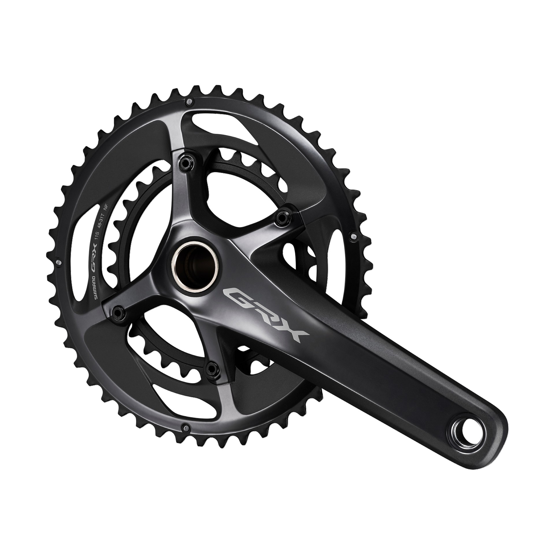 Sono tutte dotate di una linea catena di + 2,5 mm a beneficio dello spazio tra pneumatici e telaio. Le guarniture monocorona GRX sono realizzate con tecnologia Shimano Dynamic Chain Engagement per garantire una maggiore ritenzione della catena sui terreni sconnessi. La guarnitura RX810 a doppia corona, da 48-31T, presenta un gap di 17 denti, il rapporto di trasmissione più ampio mai realizzato da Shimano. Pesi: 1×11 RX810, 655 g; RX600, 753 g; 2×11 RX810, 722 g; RX600, 816 g; RX600, 819 g.
