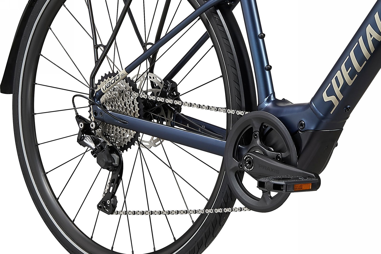 Ma c’è anche dell’altro, sulla Vado SL. Per renderla perfetta per una vita da commuter, la posizione in sella è “dinamica” e l’avantreno è ammortizzato grazie al sistema Future Shock, integrato nello sterzo (personalizzabile grazie alle due molle standard più una terza in aggiunta). La Vado SL è dunque equipaggiata con una forcella tradizionale, secondo la filosofia Specialized che vuole il biker “sospeso” e la bici ben attaccata all’asfalto.