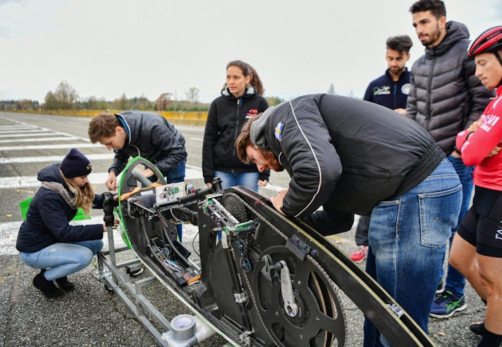 movimento orizzontale della cassetta (un brevetto del Politecnico), così da mantenere sempre la stessa linea catena; l’