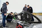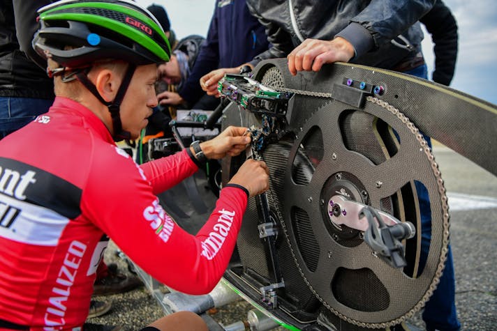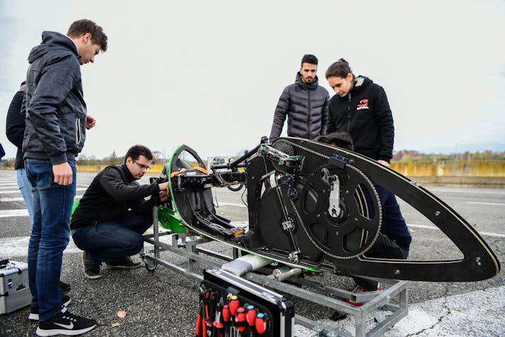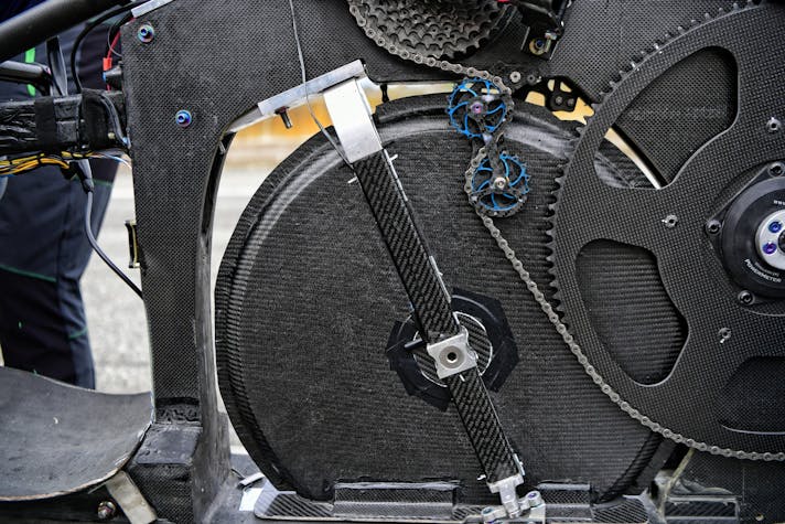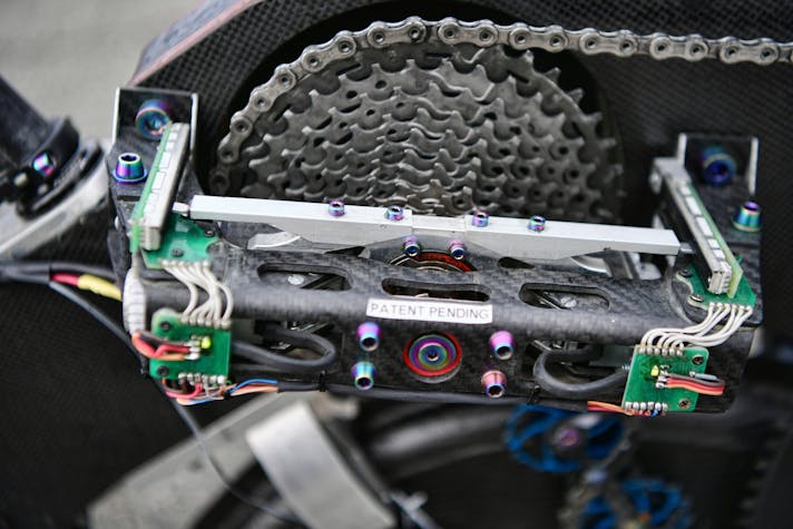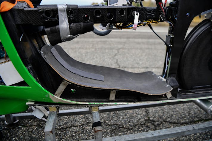 telaio è invece realizzato da una struttura di fibra di carbonio con un’anima in PVC, dotata di