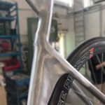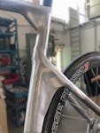 una lega di Alluminio Scandio e Zirconio. Si tratta di una soluzione già utilizzata per le bici da pista firmate da Romolo, un materiale che consente elevate prestazioni meccaniche, l’idro-formatura delle sezioni dei tubi, saldabilità elevata e possibilità di lavorare su spessori, irrigidimenti e sezioni in modo da poter controllare il comportamento di ogni centimetro del telaio.Lo