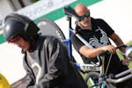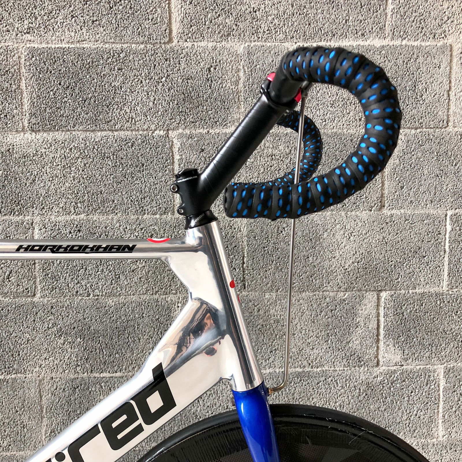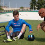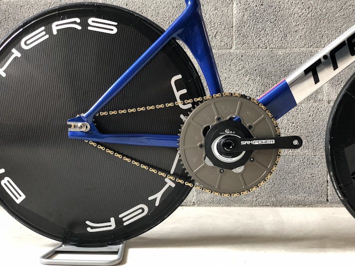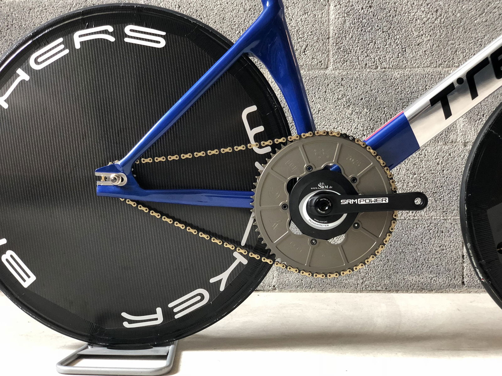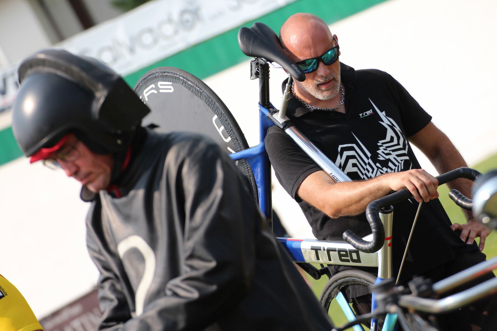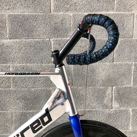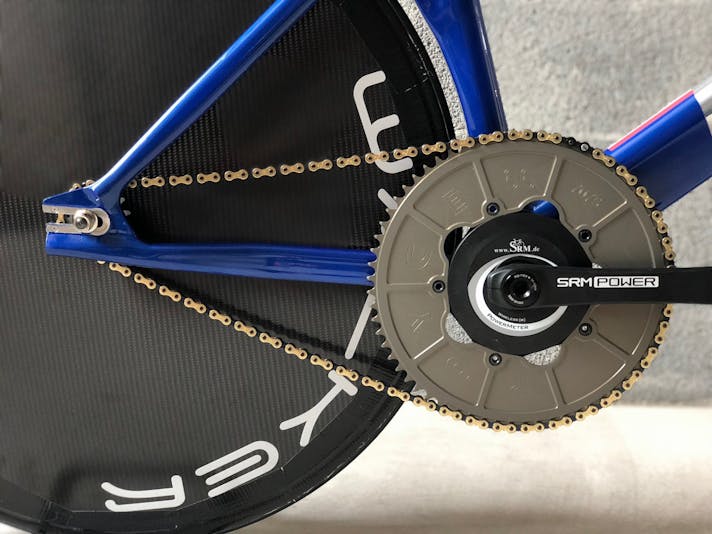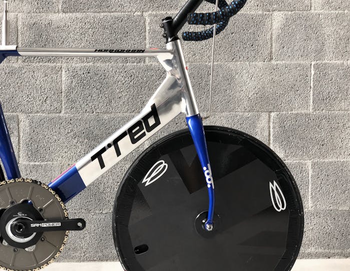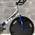 Una premessa, per capire di cosa stiamo parlando… Il ciclista (lo Stayer) è guidato da un motociclista (il Pacer) e separato dalla moto da un rullo a una distanza di circa 70 centimetri. Il Pacer guida la moto stando in piedi e genera un vuoto d’aria che permette al ciclista di sfruttare la scia per aumentare la velocità ma anche di essere spinto, con una sorta di effetto vela, dal flusso generato dalla coppia motociclista/ciclista nella direzione di marcia.Per questo motivo la posizione dell’atleta è completamente differente dalle altre discipline. Il corpo del ciclista deve essere il più vicino possibile al Pacer e la sua schiena quanto più dritta possibile per offrire più superficie alla spinta della portanza del flusso d’aria generato alle sue spalle.Ciò detto, le regole sancite dal regolamento sono due: l’arretramento della punta della sella non può superare il centro del movimento centrale; la distanza tra movimento centrale e asse ruota anteriore non può superare i 55 cm. Per questa ragione e per avanzare il più possibile il ciclista verso la moto, si utilizza una ruota anteriore da 24″ che aumenta l’interasse virtuale anche per il rake negativo della forcella, rendendo comunque la bici stabile anche alle alte velocità. La forcella ha rake negativo in modo da non permettere alla ruota di scomporsi quando tocca il rullo della moto poiché l’asse della stessa è dietro il fulcro dello sterzo.