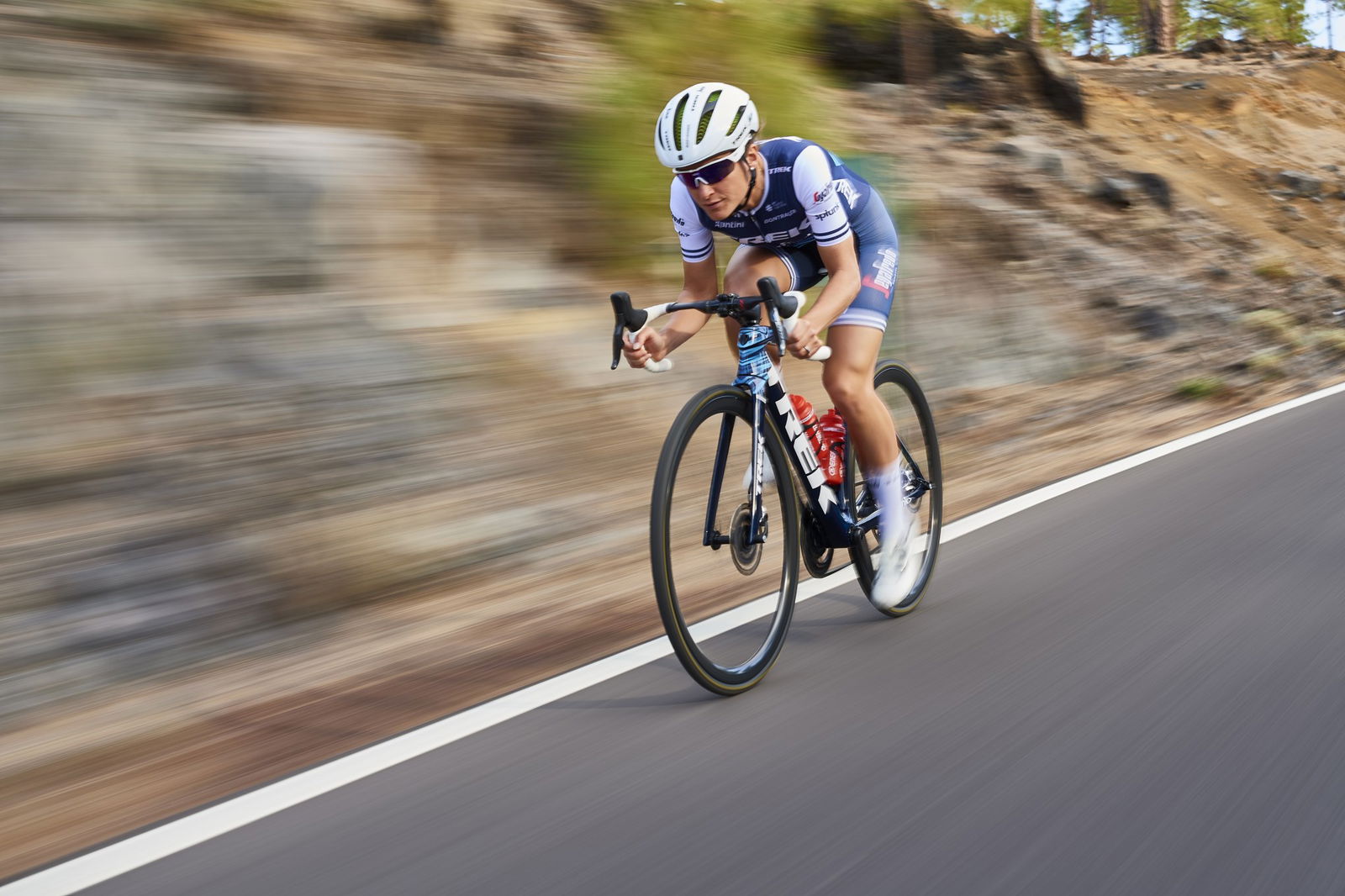18 secondi l’ora su pendenze dell’8%. Il nuovo telaio ha geometria H1.5, sviluppata con i professionisti del team Trek Segafredo, che abbina il feeling della bici da gara a prestazioni allround.