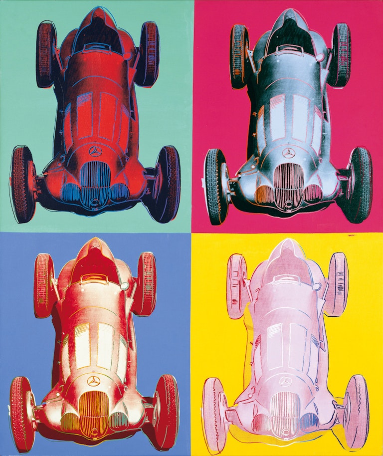 Il Petersen Automotive Museum di Los Angeles ospita una raccolta di 27 serigrafie su tela e 13 disegni che portano la firma del padre della Pop art. Fino al 22 gennaio 2023