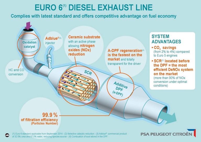 Adottata principalmente da Mercedes e Citroën, l’interazione tra catalizzatore ossidante, filtro antiparticolato e additivo AdBlue consente di abbattere le emissioni d’ossido d’azoto e consente ai motori Diesel di rientrare nella normativa Euro6. Ecco come agisce