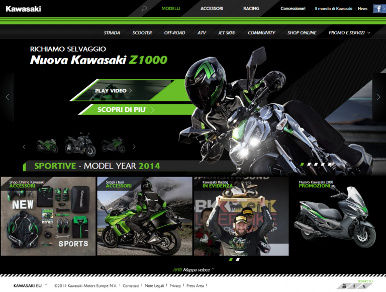 Rinnovata nel design e nelle funzionalità, la nuova pagina web di Kawasaki Italia comprende nuove sezioni, notizie in tempo reale e connessione permanente alle piattaforme social ufficiali