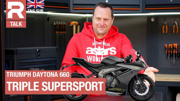 La nuova Triumph Daytona 660 porta in dote un nome pesante ed è la nuova sportiva di media cilindrata, con cui Triumph si getta nell’arena più calda del momento, quella delle piccole sportive stradali con carena e semimanubri.